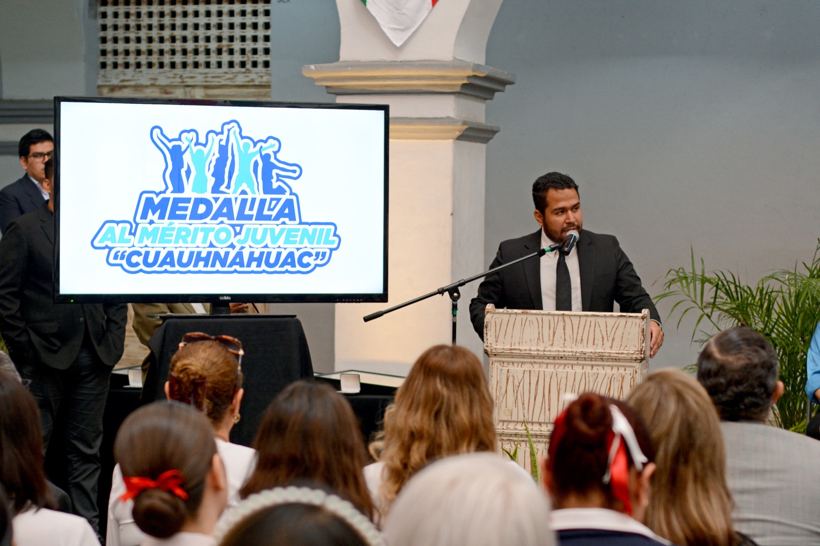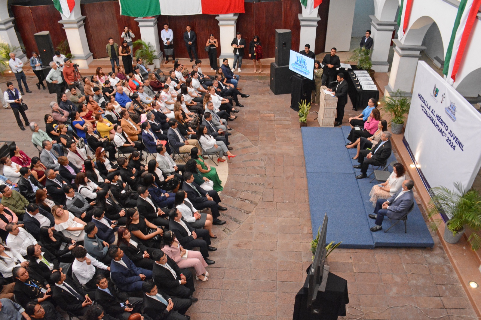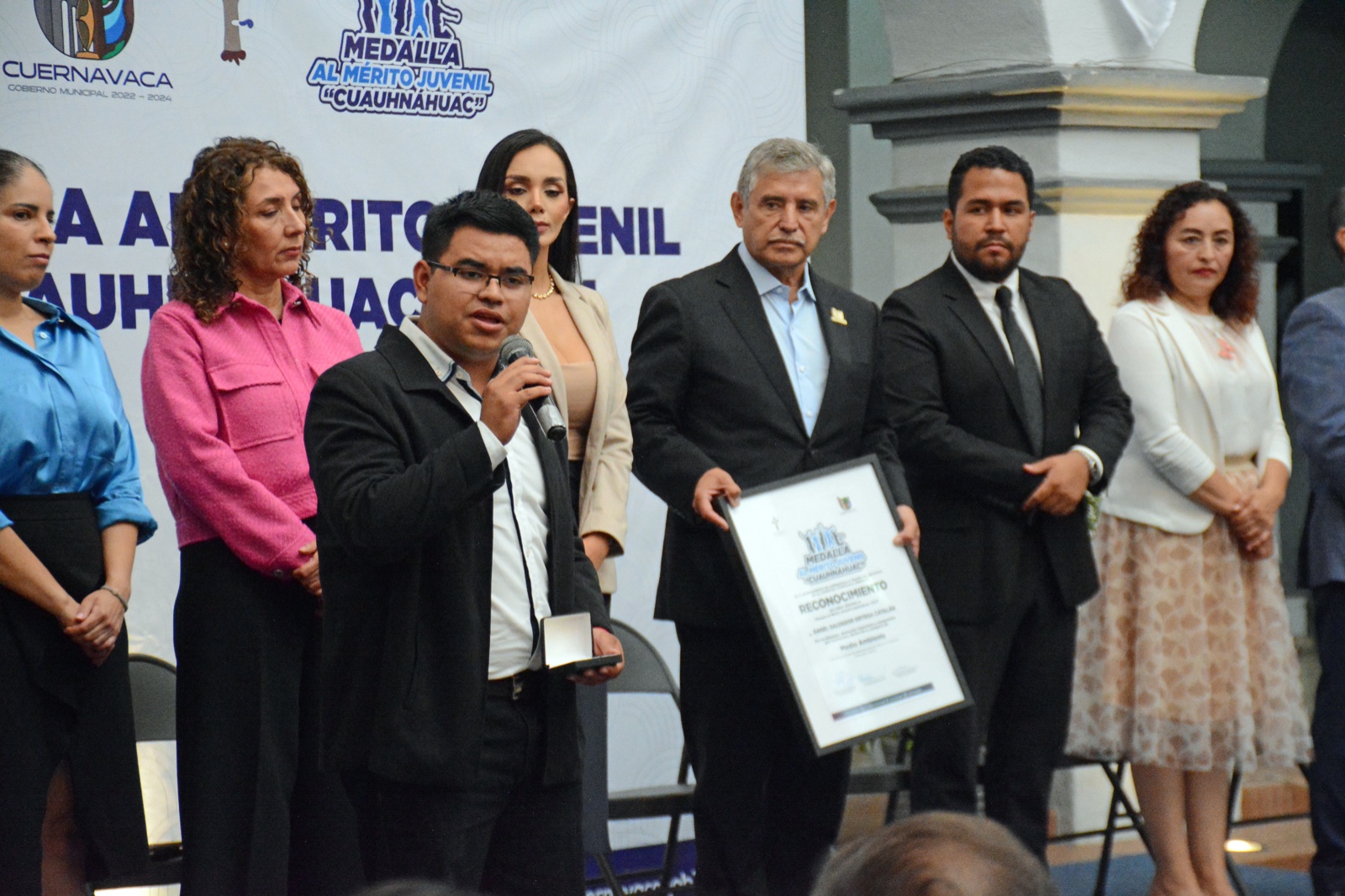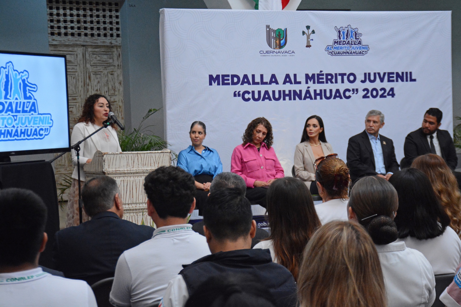 En la entrega de la medalla al Mérito Juvenil “Cuauhnáhuac” estuvieron presentes Karla Lorena Barragán y Dalia Terrones Castillo, quienes felicitaron a las y los jóvenes, representantes de instituciones educativas y de la iniciativa privada, familiares y amigos de las y los premiados.