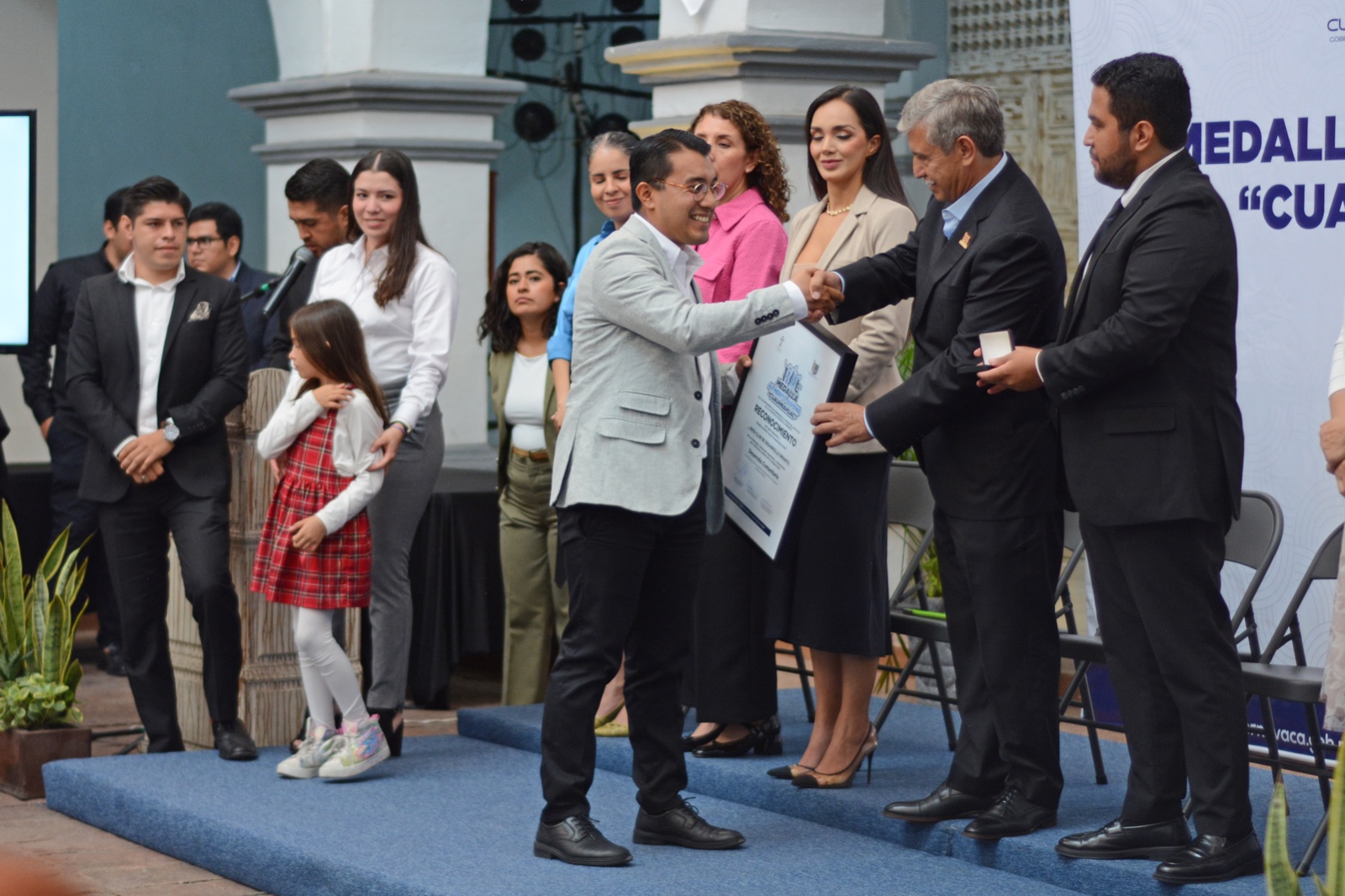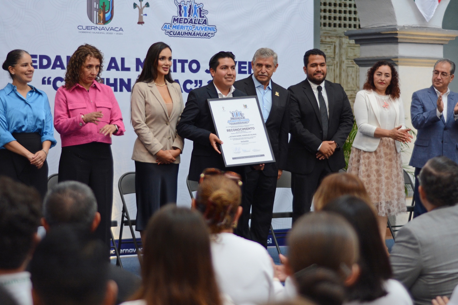 Como un hecho sin precedentes en Cuernavaca, nueve jóvenes y una asociación civil recibieron este lunes de manos del presidente municipal, José Luis Urióstegui Salgado la medalla al Mérito Juvenil “Cuauhnáhuac”, creado a través del Instituto de la Juventud de la Secretaría de Desarrollo Humano y Participación Social como un reconocimiento a su incansable dedicación y entrega como agentes de cambio social que marcarán el rumbo de las nuevas generaciones, el desarrollo y progreso de la ciudad.