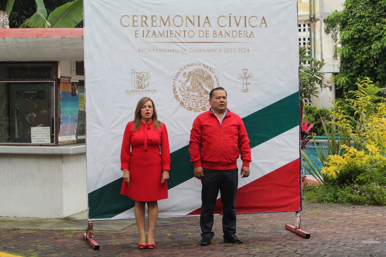 El Ayuntamiento de Cuernavaca honra los símbolos patrios y a los héroes y heroínas que lucharon por la Independencia de México con ceremonia de izamiento y honores a la bandera que este martes estuvo encabezada por la Consejería Jurídica y las Regidurías de Participación Ciudadana, Seguridad Pública y Tránsito.