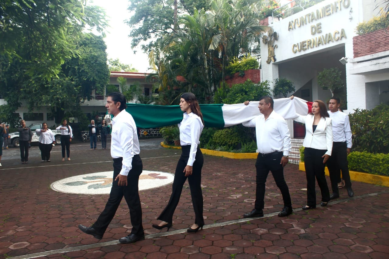 El Sistema Municipal DIF Cuernavaca y la Regiduría de Derechos Humanos, así como de Educación, Cultura y Recreación, se sumaron este miércoles al fortalecimiento del respeto y amor a los Símbolos Patrios al encabezar la ceremonia de izamiento de bandera en la sede Papagayo del Gobierno Municipal.