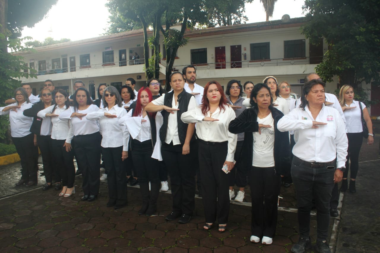 El director general del DIF Cuernavaca, Cristopher Torres Ocampo y la representación del regidor Debendrenath Salazar Solorio, acompañados por personal adscrito a sus dependencias, entonaron en una sola voz el Himno Nacional Mexicano con la escolta que estuvo conformada por servidores públicos del organismo descentralizado.