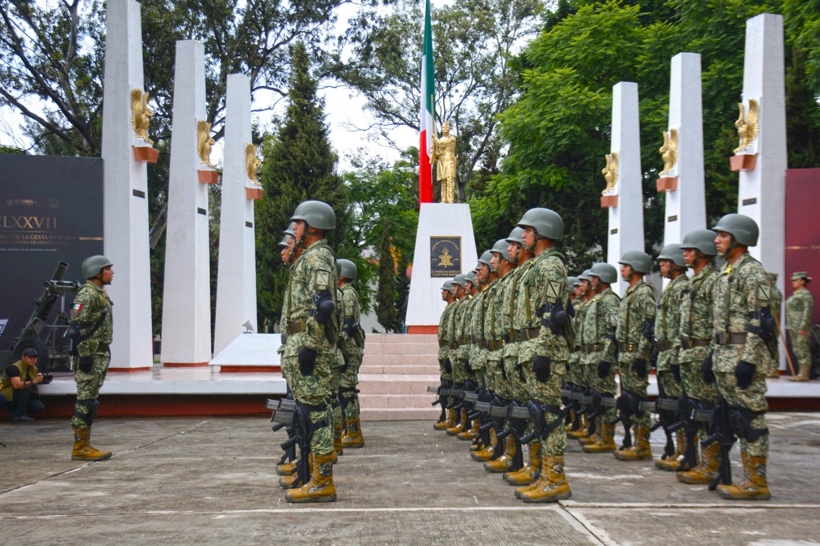 Durante el acto solemne, se efectúo una salva de fusilería y se colocó una ofrenda floral para realizar posteriormente las autoridades presentes una guardia de honor mientras la banda de guerra interpretaba el solemne Himno Nacional en honor a la memoria de los Niños Héroes de Chapultepec.