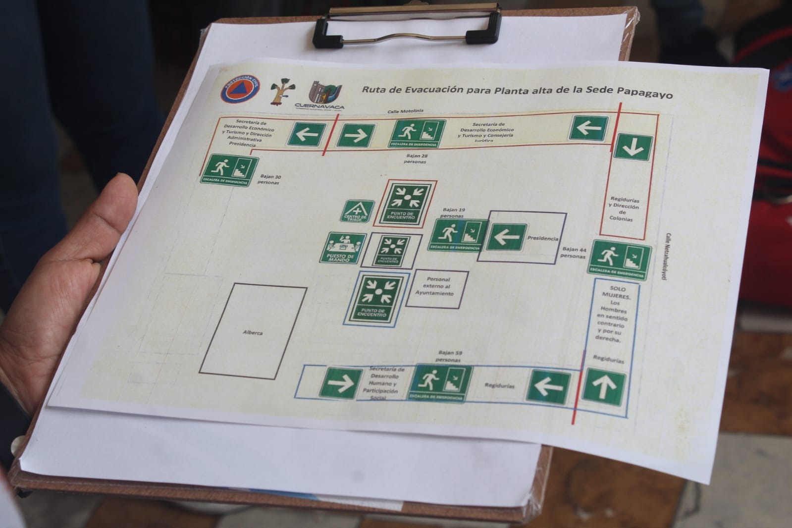 José Francisco Rivera, jefe de brigada en la sede Papagayo del Ayuntamiento de Cuernavaca, informó que, bajo la instrucción del presidente municipal de Cuernavaca, José Luis Urióstegui Salgado, que ha dispuesto impulsar desde la administración una cultura de protección civil y la gestión de riesgos, cada una de las unidades han sido capacitadas para actualizar los conocimientos y protocolos, ya que están a cargo de organizar sus simulacros con la hipótesis central de un sismo de magnitud 7.5 con epicentro en Acapulco, Guerrero.