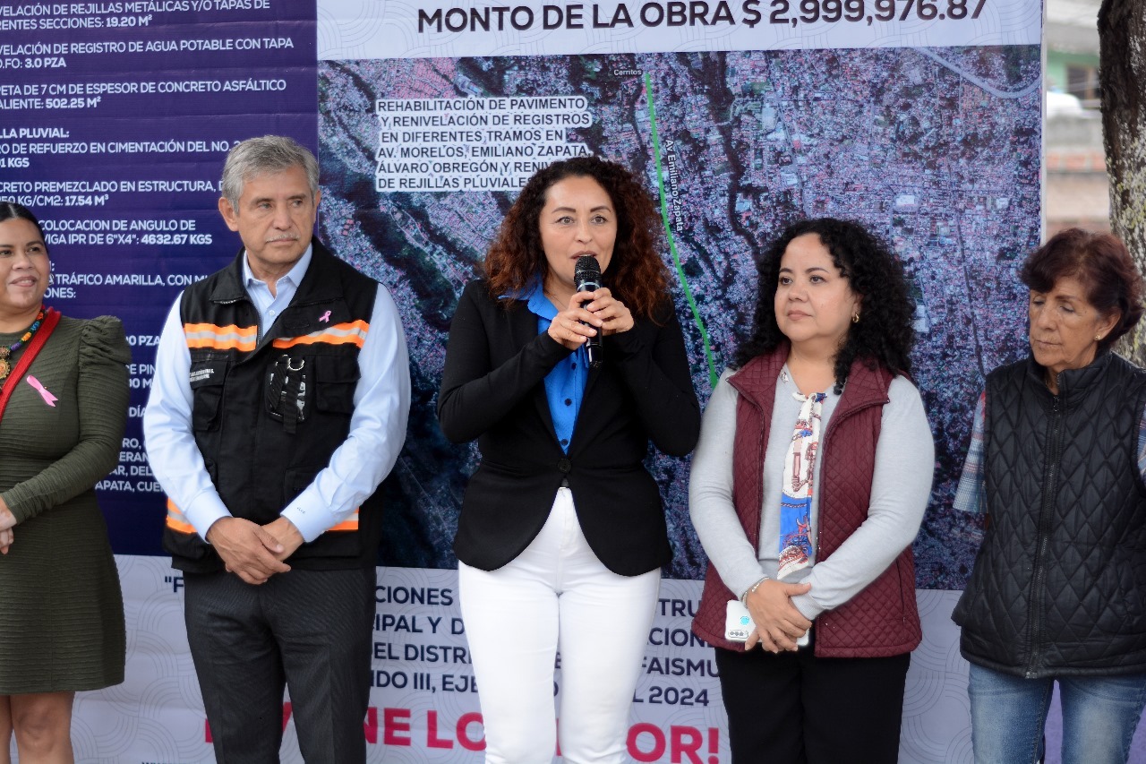 Acompañado de la síndica municipal, Catalina Verónica Atenco Pérez y de los regidores Wendi Salinas Ruiz, Mireya Delgado Romero, Fernando Carrillo Alvarado y Sergio Quevedo Núñez, el alcalde puntualizó que esta obra es una muestra más de la eficiencia en el manejo de los recursos públicos para el beneficio de un mayor número de personas, toda vez que este mantenimiento mejorará tramos sumamente afectados de colonias como el Centro, Club de Golf, la Carolina, la Pradera, la Esperanza, Tlaltenango y Buenavista.