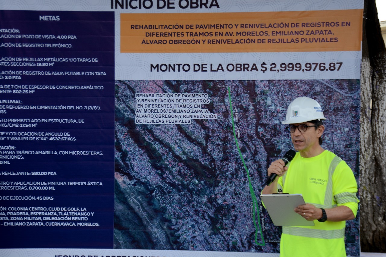 El presidente municipal de Cuernavaca, José Luis Urióstegui Salgado, dio este martes el banderazo de arranque a la obra de rehabilitación del pavimento en diferentes tramos de las avenidas Morelos, Emiliano Zapata y Álvaro Obregón, la cual con una inversión de dos millones 999 mil 976.87 pesos del Fondo de Aportaciones para la Infraestructura Social Municipal (FAISMUN) contempla también la renivelación de registros y de rejillas pluviales, beneficiando a más de 18 mil habitantes directos de distintas colonias en la ciudad.