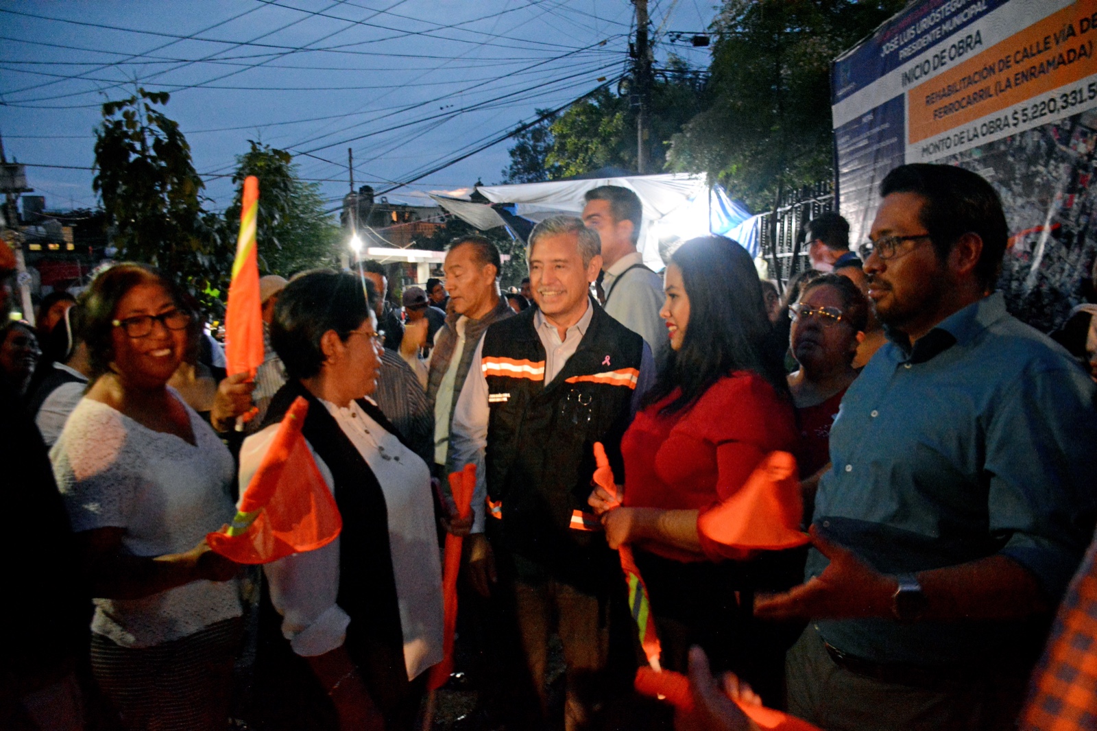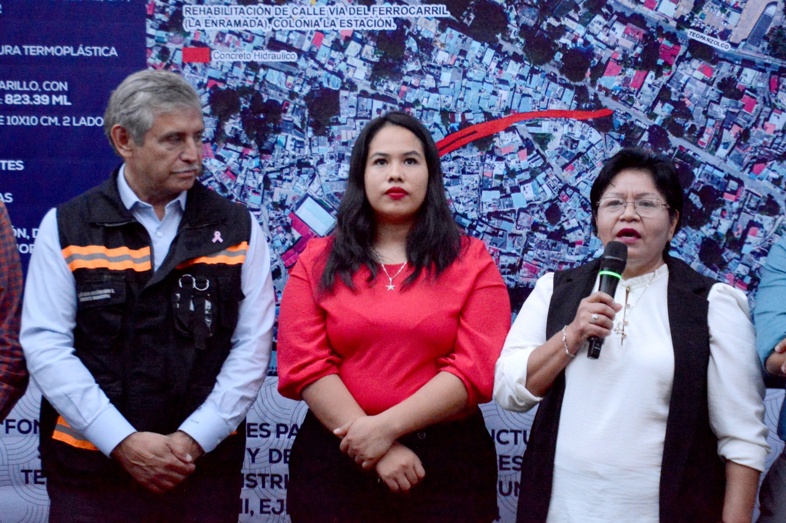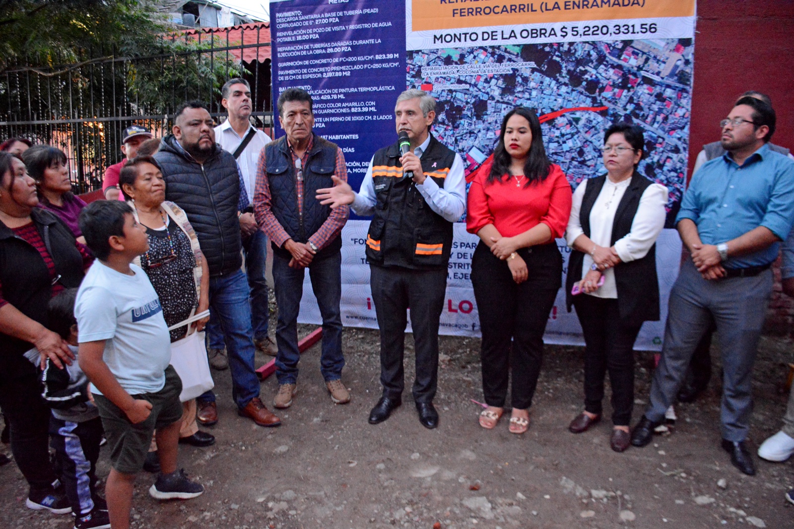 El presidente municipal de Cuernavaca, José Luis Urióstegui Salgado, puso en marcha la obra integral de pavimentación con concreto hidráulico de la calle Vía del Ferrocarril (La Enramada) en la colonia Patios de la Estación que con una inversión de cinco millones 220 mil 331.56 pesos del Fondo de Aportaciones para la Infraestructura Social Municipal (FAISMUN) busca mejorar la calidad de vida de más de 16 mil personas, al transformar en su totalidad esta vía de comunicación que era intransitable por la falta completa de la cinta asfáltica.