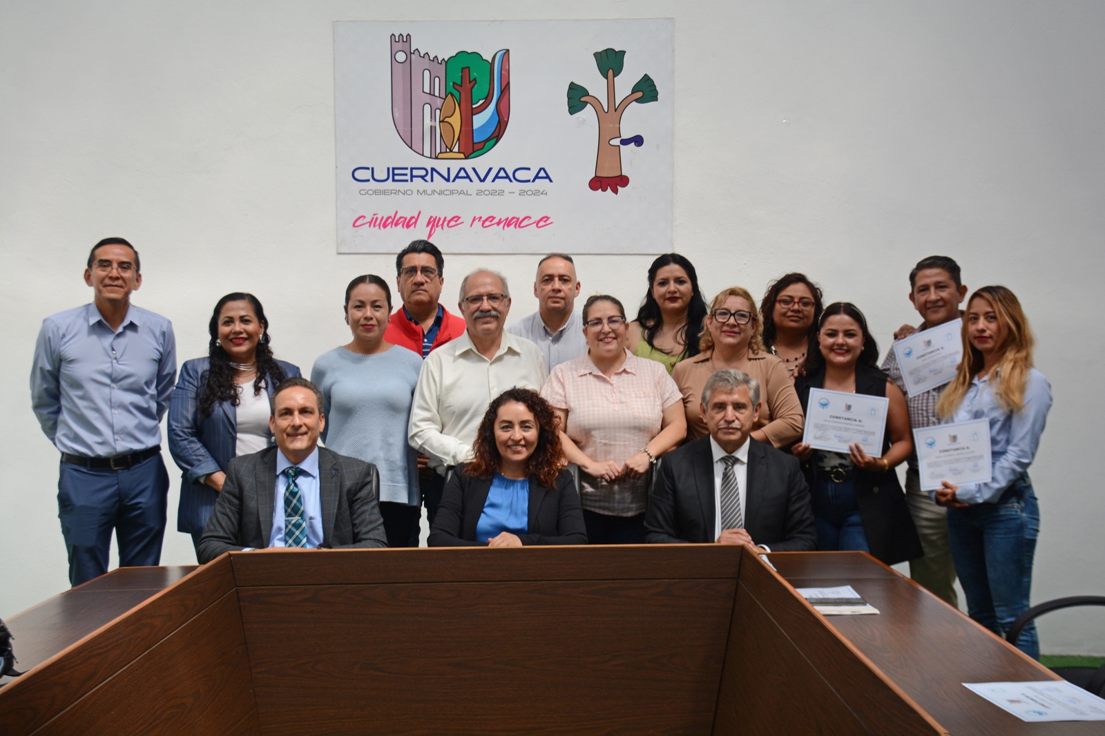 El presidente municipal de Cuernavaca, José Luis Urióstegui Salgado, encabezó la entrega de constancias a personal operativo del juzgado cívico y del Secretariado Ejecutivo del Consejo Municipal de Seguridad Pública que participaron en el curso “Mecanismos alternativos aplicados a la Justicia Cívica”, con lo cual el Gobierno Municipal sigue posicionándose a la vanguardia a nivel estatal en la homologación del Modelo Nacional de Policía y Justicia Cívica.
