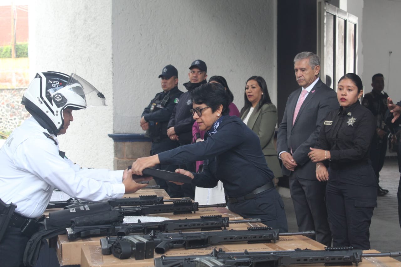 En este contexto, la directora de Mantenimiento y Control de Armamento de SEPRAC, Johana Benítez Benítez, detalló que con una inversión promedio de tres millones y medio de pesos de recursos federales se entregaron estos 15 fusiles calibre 5.56 fabricadas en México que utiliza también la Guardia Nacional, así como 130 chalecos balísticos que darán seguridad a los elementos y, por ende, a la población.