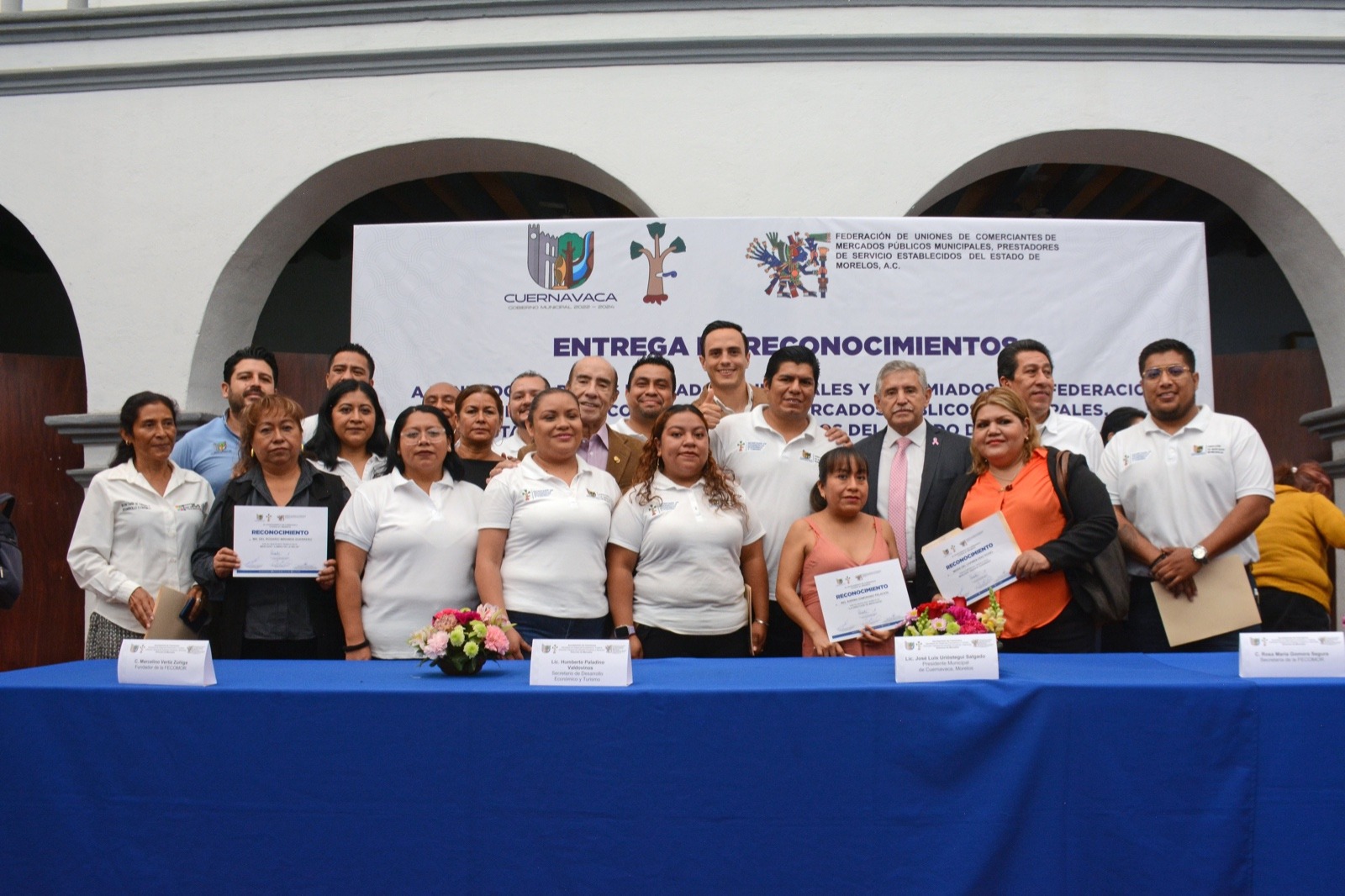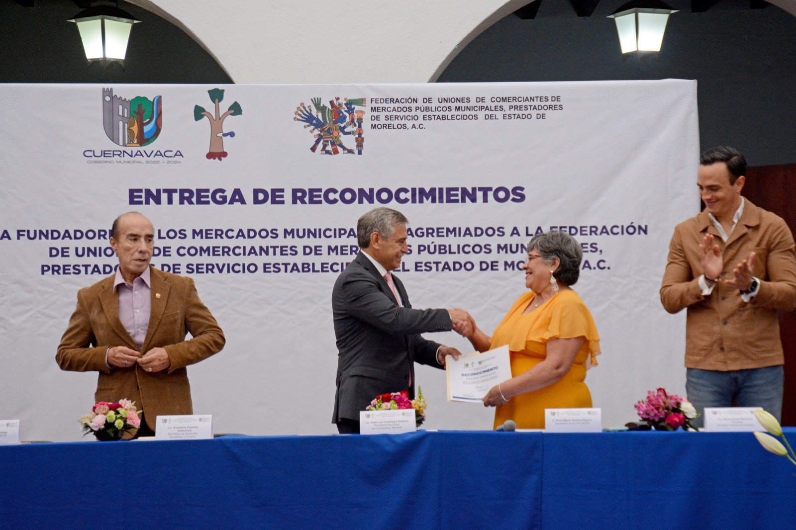 El Ayuntamiento de Cuernavaca hizo entrega de más de 90 reconocimientos a fundadores de los mercados periféricos y agremiados a la Federación de Uniones de Comerciantes de Mercados Públicos Municipales, Prestadores de Servicios Establecidos del Estado de Morelos A.C., por su destacada labor diaria al servicio de la comunidad que ha fortalecido el desarrollo económico de la ciudad, sumándose a las acciones de fortalecimiento e impulso de los mercados que ha priorizado la presente administración.