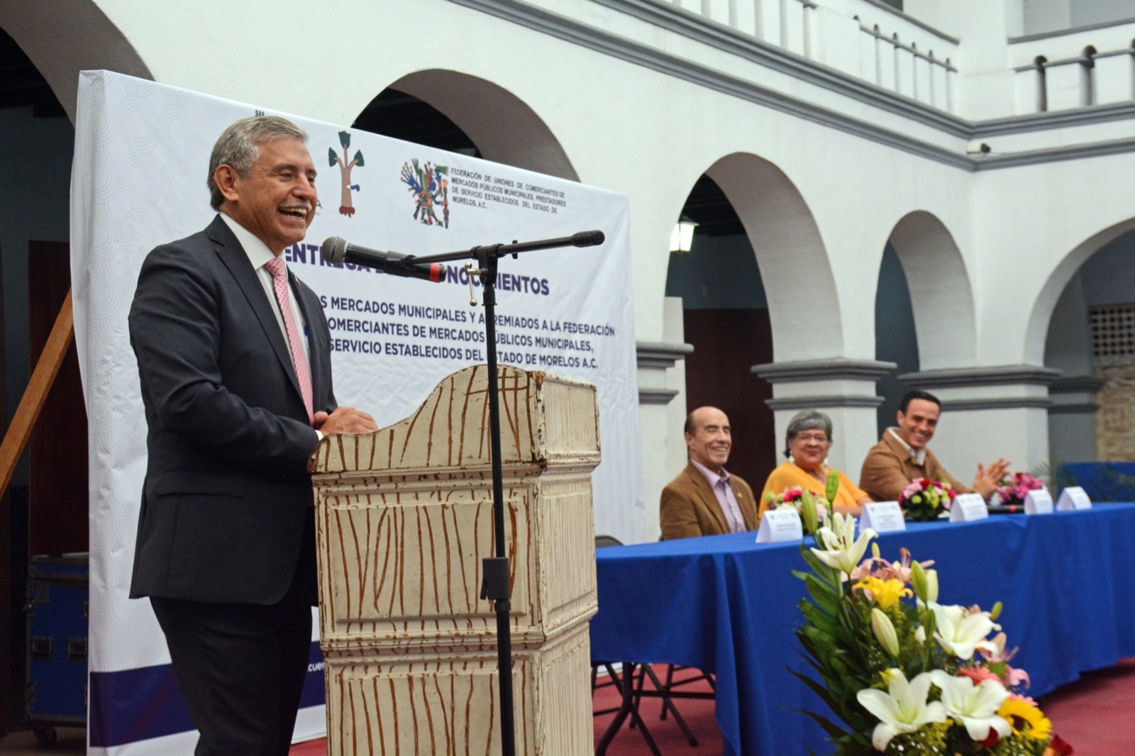 La secretaria general de la Federación de Uniones de Comerciantes de Mercados Públicos Municipales, Prestadores de Servicios Establecidos del Estado de Morelos A.C., Rosa María Gomora Segura, agradeció y reconoció el trabajo hecho por mujeres y hombres que por años han dedicado su vida al servicio y a la consolidación de los mercados de Cuernavaca, luchando de forma honorable por defender su patrimonio y la fuente de trabajo de cientos de familias, como es el caso Marcelino Vertiz Zúñiga, fundador de la federación.