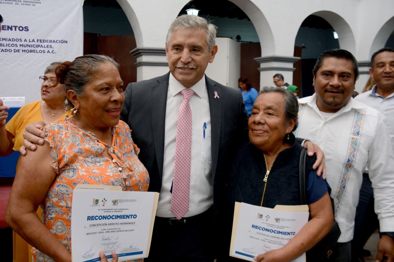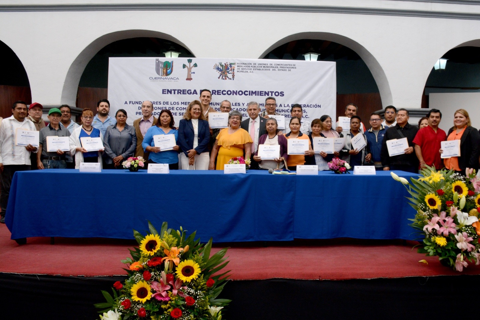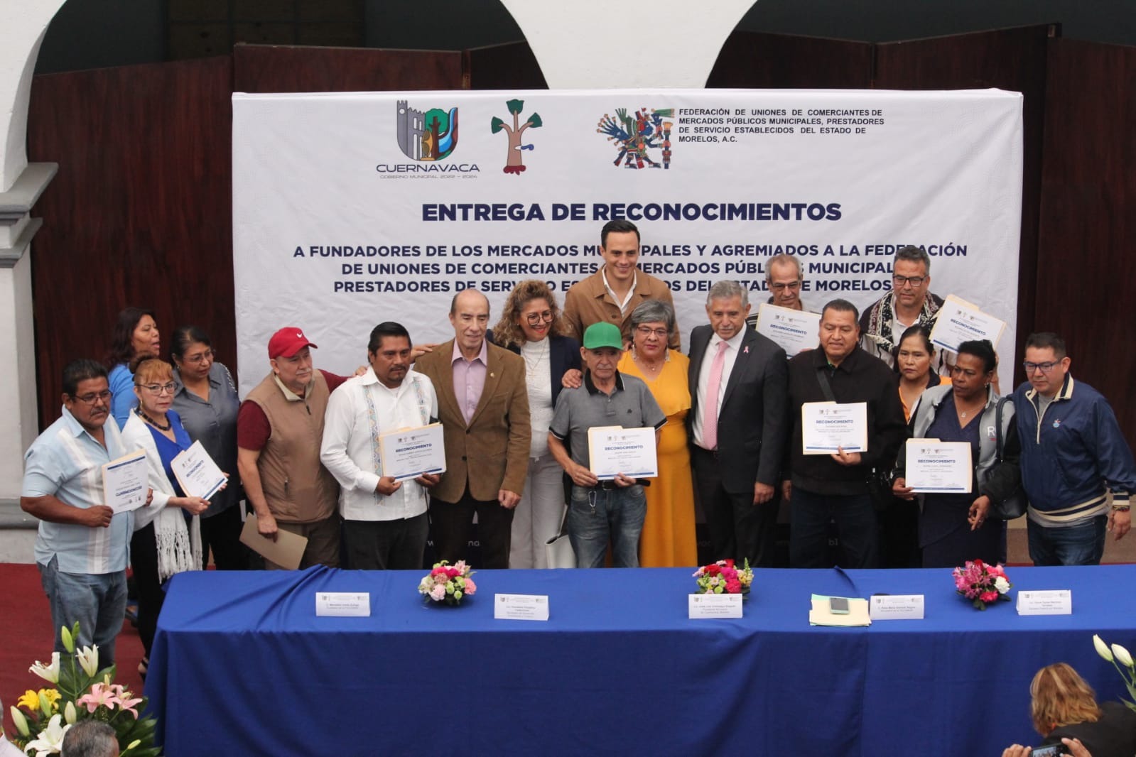 El Ayuntamiento de Cuernavaca hizo entrega de más de 90 reconocimientos a fundadores de los mercados periféricos y agremiados a la Federación de Uniones de Comerciantes de Mercados Públicos Municipales, Prestadores de Servicios Establecidos del Estado de Morelos A.C., por su destacada labor diaria al servicio de la comunidad que ha fortalecido el desarrollo económico de la ciudad, sumándose a las acciones de fortalecimiento e impulso de los mercados que ha priorizado la presente administración.