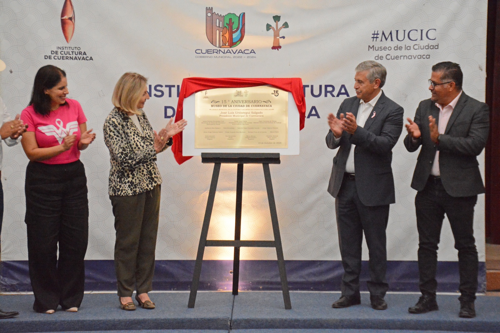 En el marco de la sesión del Consejo Municipal de la Cultura y las Artes de Cuernavaca, el presidente municipal, José Luis Urióstegui Salgado, encabezó la develación de la placa conmemorativa al XV aniversario de que el Museo de la Ciudad de Cuernavaca (MuCiC) fuera declarado por el Cabildo como un recinto para la cultura, un espacio con más de dos siglos que en los últimos dos años y 10 meses ha renacido convirtiéndose en un punto de encuentro donde todas las expresiones artísticas y culturales de la ciudad han tenido manifestación.