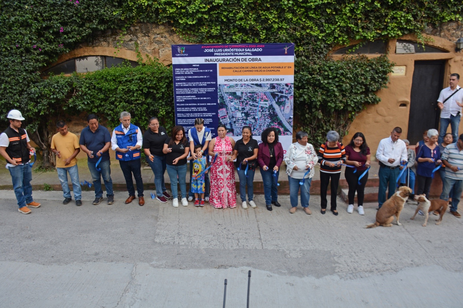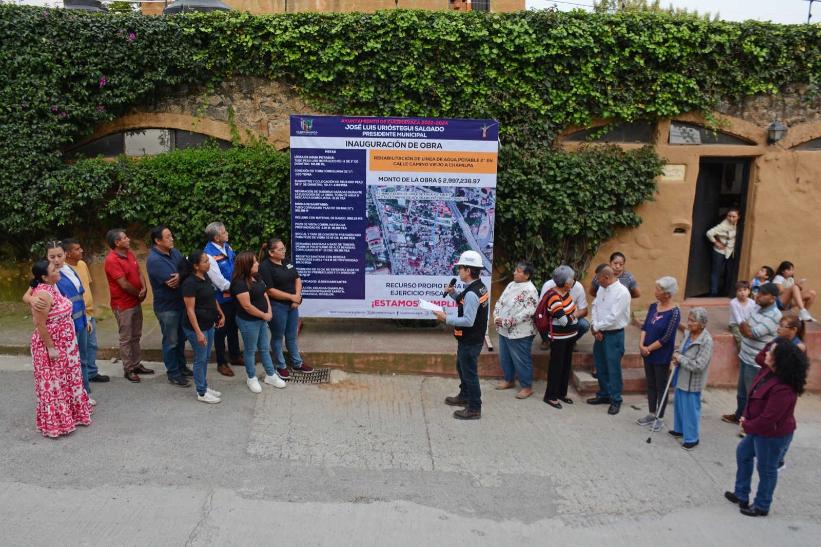 Con el propósito de mejorar el servicio de distribución de agua potable en Cuernavaca, el Ayuntamiento de Cuernavaca encabezado por José Luis Urióstegui Salgado cumple con el compromiso de devolver en obras los recursos recaudados por el pago del impuesto predial y otras contribuciones fiscales a la población, lo cual quedó demostrado con la obra de rehabilitación de dos líneas de agua en la calle Camino Viejo a Chamilpa que con un monto de inversión de dos millones 997 mil 238.97 pesos beneficiará a más de tres mil habitantes directos de la colonia Tlatepexco que pertenece al poblado de Chamilpa.