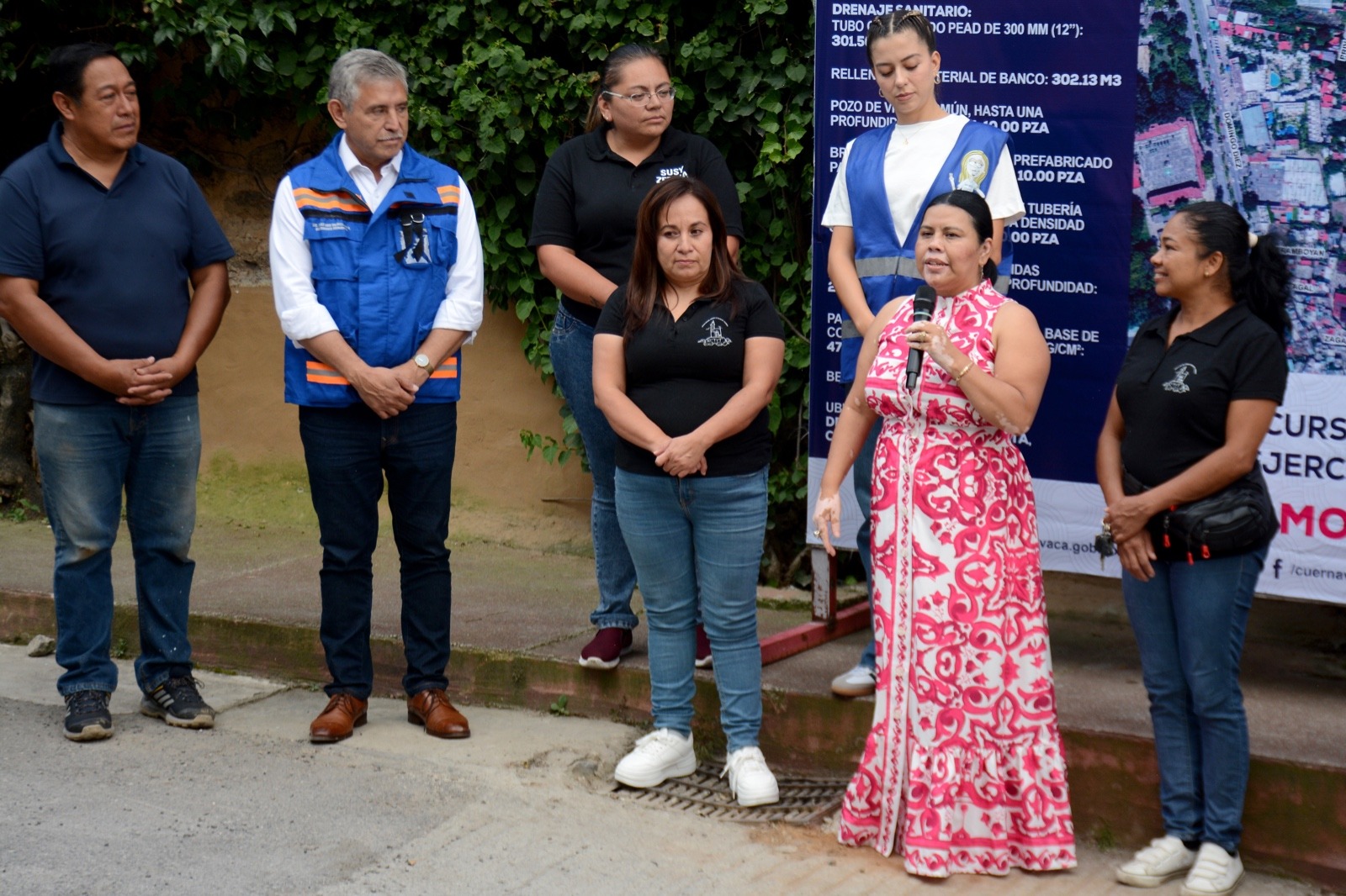 A la entrega de obra acudieron la titular de la Delegación Emiliano Zapata Salazar, María Salomé Salgado Martínez; y titulares de área del Sistema de Agua Potable y Alcantarillado de Cuernavaca (SAPAC) que solicitó esta obra en base a un estudio de necesidades.