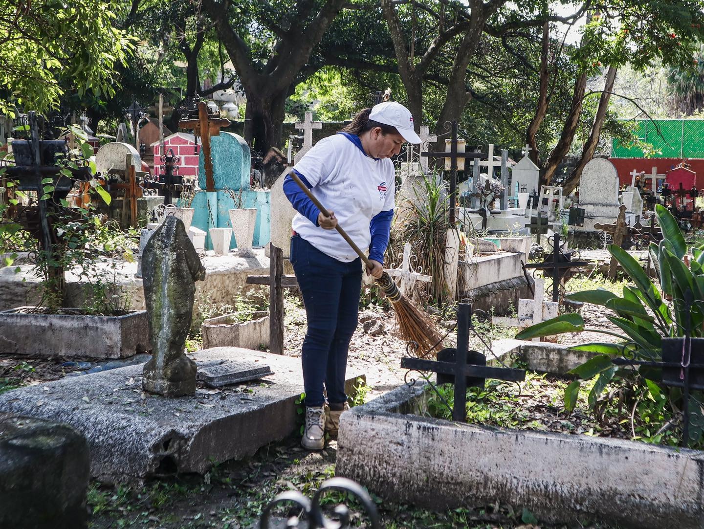 En un trabajo conjunto, este sábado a convocatoria de la Fundación S.O.S México‚ elementos de la 24ava Zona Militar y personal de la Secretaria de Desarrollo Sustentable y Servicios Públicos de las áreas de remozamiento urbano‚ aseo urbano‚ parques y jardines del Ayuntamiento de Cuernavaca además del apoyo de vecinos, llevaron a cabo una jornada de limpieza y acondicionamiento dentro de las instalaciones del Panteón de la Leona.
