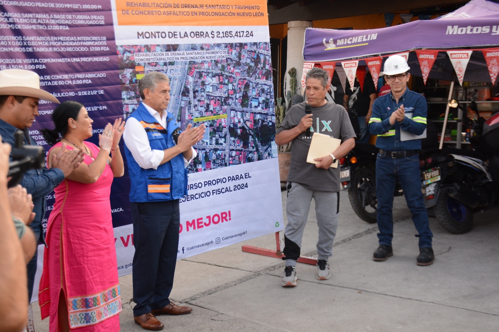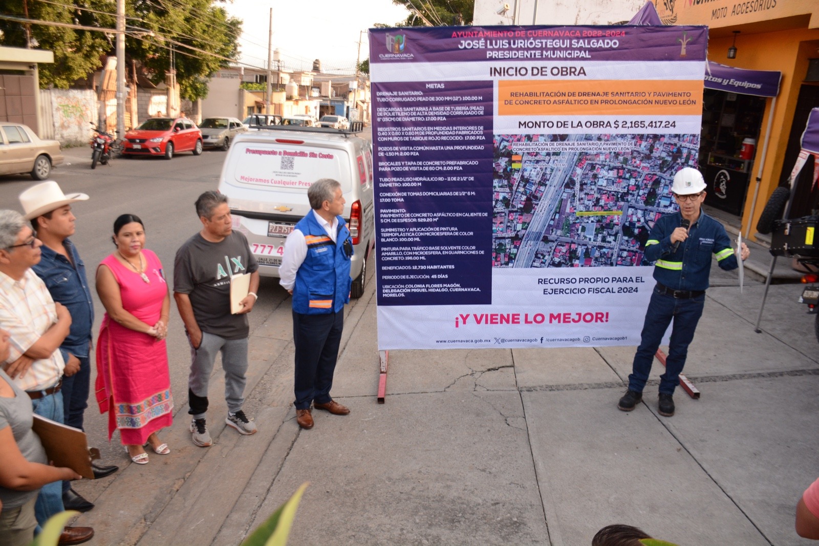 El presidente municipal de Cuernavaca, José Luis Urióstegui Salgado, dio el banderazo de arranque a la obra de rehabilitación del drenaje sanitario y de la aplicación de pavimento con concreto asfáltico de la calle Prolongación Nuevo León en la colonia Flores Magón, la cual con un monto de inversión de recursos propios municipales de dos millones 165 mil 417.24 pesos se beneficiará a más de 12 mil habitantes.