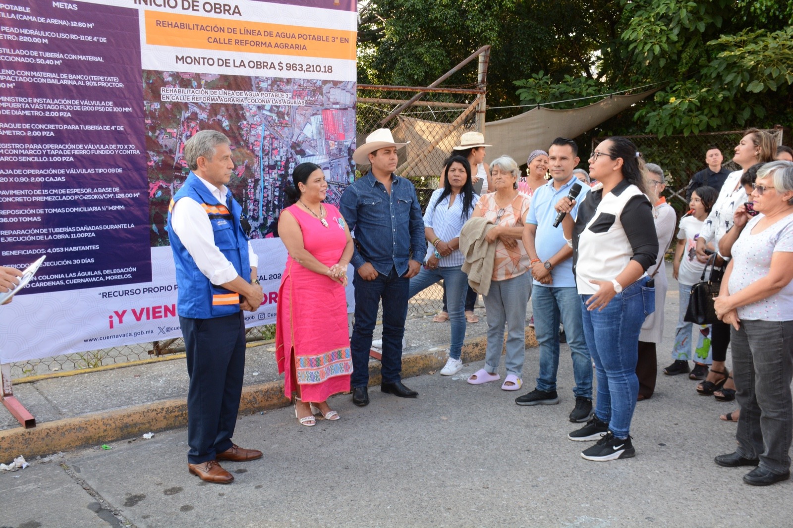 El presidente municipal de Cuernavaca, José Luis Urióstegui Salgado, dio el banderazo de arranque a la obra de rehabilitación de la línea de agua potable de tres pulgadas en calle Reforma Agraria de la colonia Las Águilas, la cual con un monto de inversión de 963 mil 210.18 pesos de recursos propios municipales mejorará la calidad de vida de cuatro mil 053 habitantes directos al garantizar su derecho al agua.