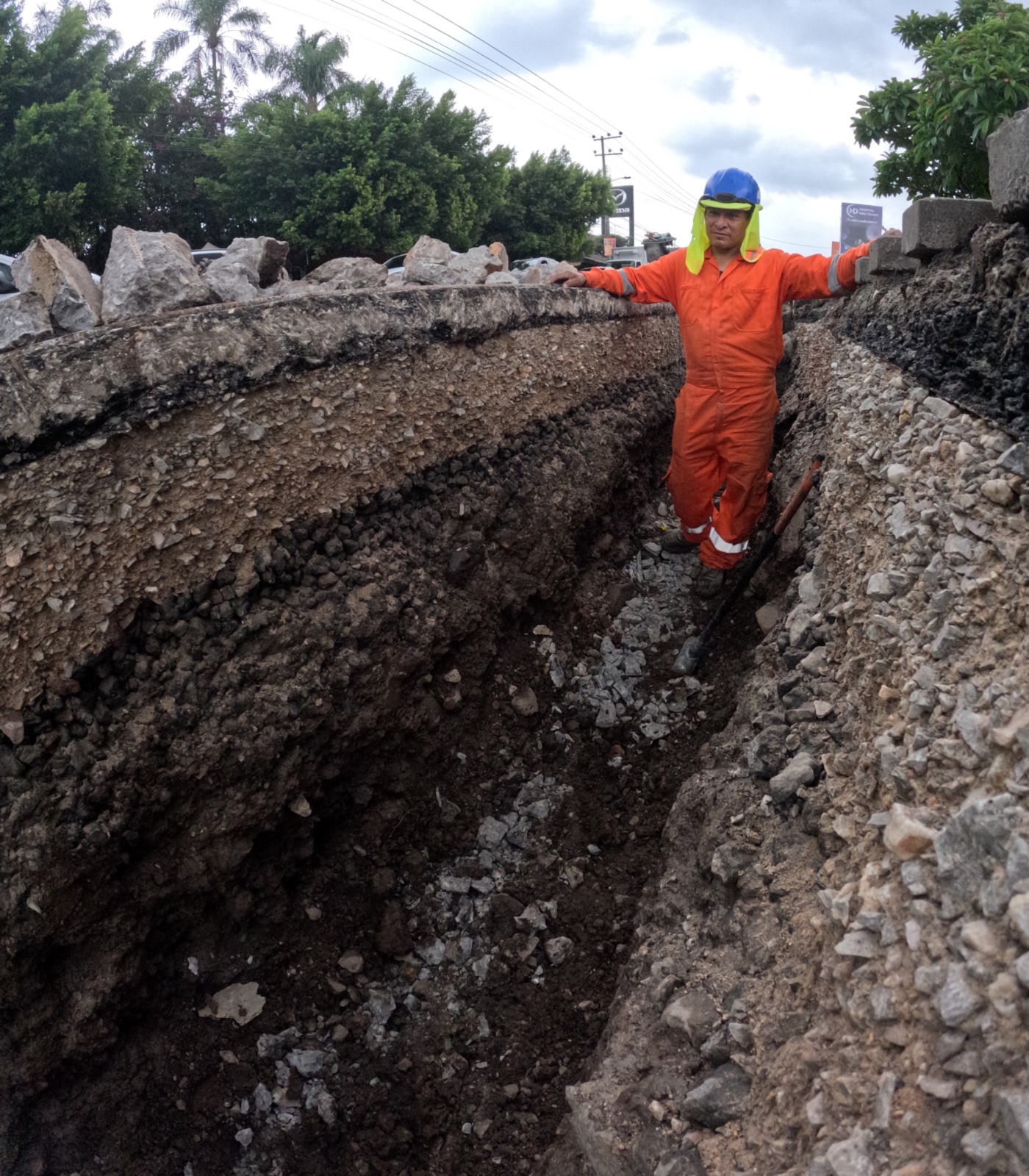 Además, se construyeron guarniciones de 15x15x15 centímetros y de 20x15x40 centímetros de concreto en 205.45 metros lineales para finalmente reponer el pavimento de siete centímetros de espesor de concreto asfáltico en 260 metros cuadrados.