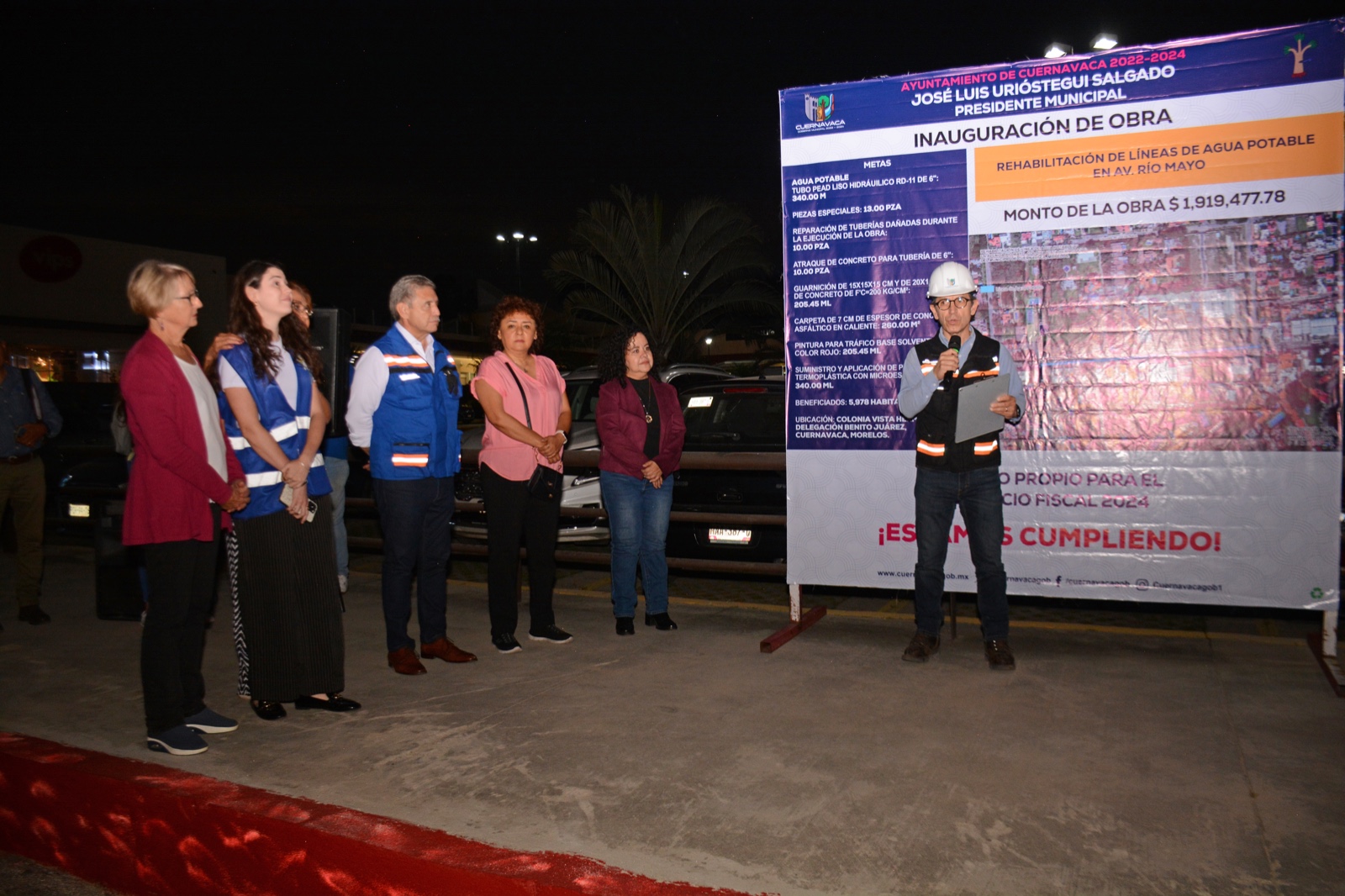 Con un monto de inversión de un millón 919 mil 477.78 pesos de recursos propios, el presidente municipal de Cuernavaca, José Luis Urióstegui Salgado, entregó la obra de rehabilitación de la línea de agua potable de la avenida Río Mayo en la colonia Vista Hermosa, una de las principales arterias en la ciudad, que ha mejorado el suministro de agua para el consumo de más de cinco mil habitantes.