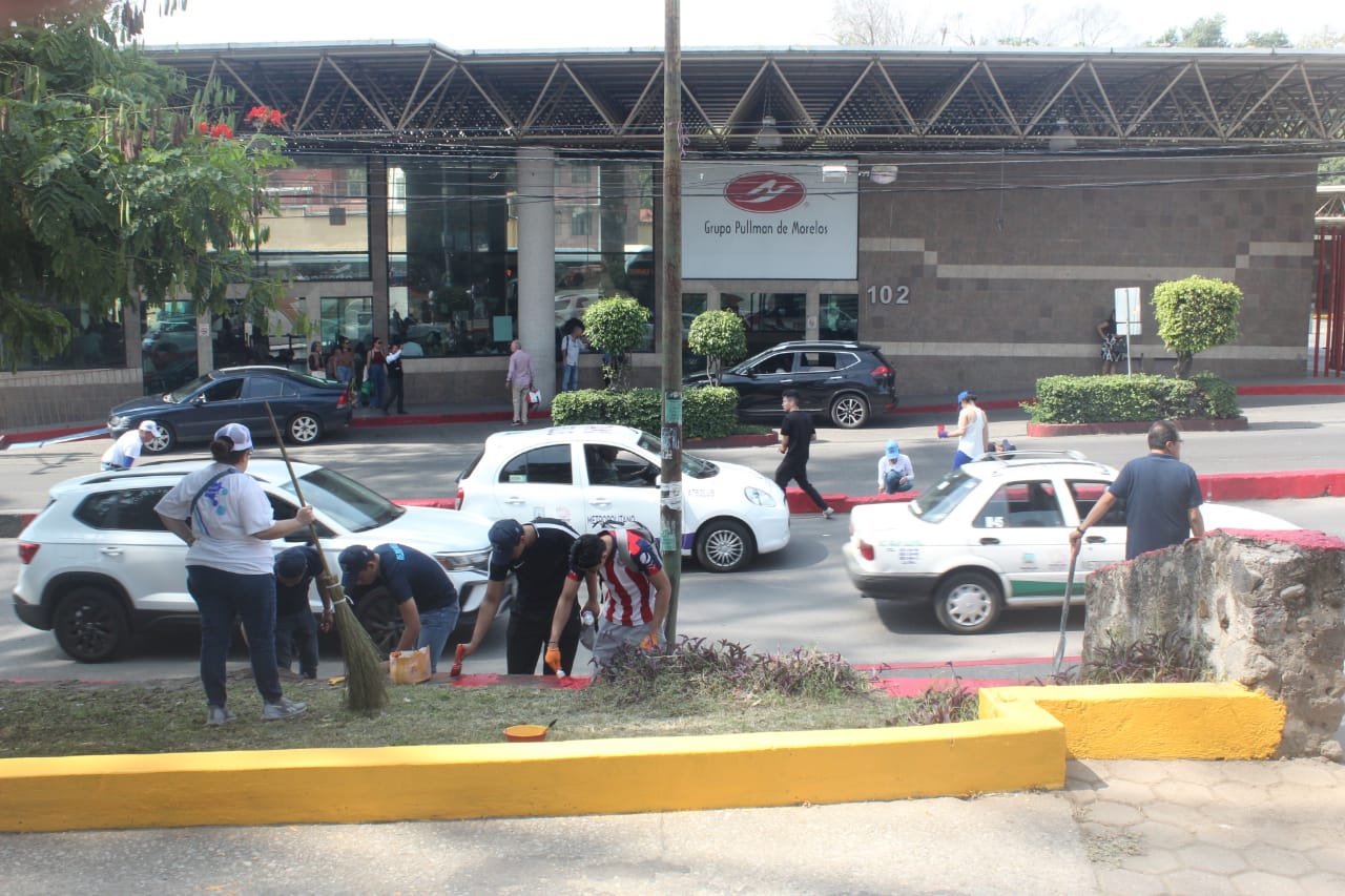Bajo la encomienda de que en comunidad se debe recuperar la imagen de Cuernavaca, el alcalde capitalino junto con vecinos de distintas colonias llevó a cabo labores de limpieza en los camellones que se ubican en las calles Ferrocarril y Vía del Ferrocarril donde rescataron el mural de “Bienvenido a Cuernavaca”, así como en el parque ubicado frente a Benning Academia de Música.