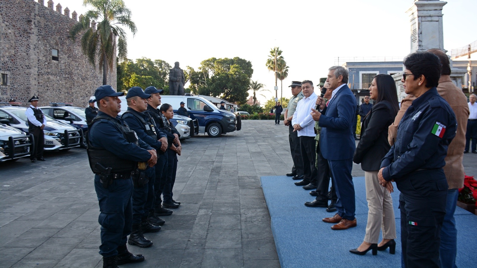 El presidente municipal de Cuernavaca, José Luis Urióstegui Salgado, acompañado del secretario de Gobierno, Juan Salgado Brito, en representación de la gobernadora, Margarita González Saravia Calderón, y del secretario de Seguridad y Protección Ciudadana del estado, Miguel Ángel Urrutia Lozano, hizo entrega este viernes de 18 unidades a la Secretaría de Protección y Auxilio Ciudadano (SEPRAC) fortalecerán la operatividad diaria de la corporación para salvaguardar la seguridad y bienestar de los habitantes y visitantes a la ciudad capital.