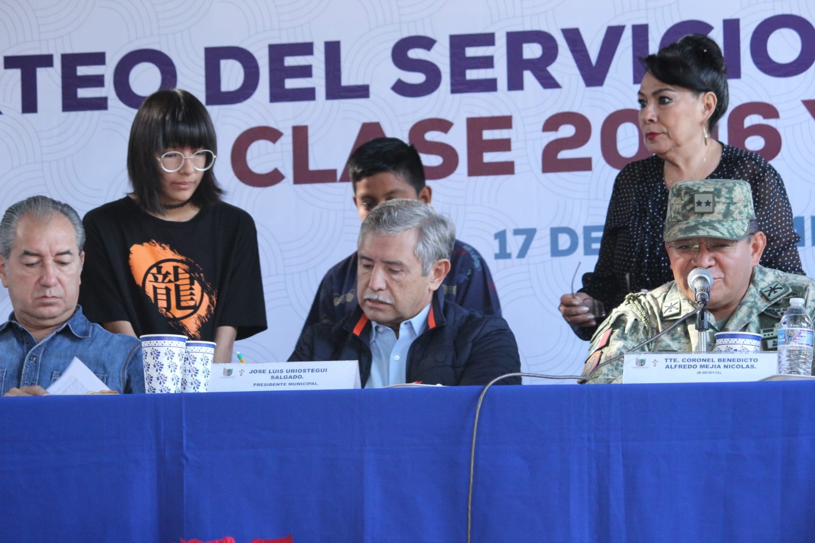 Acompañado del secretario del Ayuntamiento, Carlos de la Rosa Segura y de las regidoras Wendi Salinas Ruiz y Lucero Cuenca Noria, el también presidente de la Junta Municipal de Reclutamiento del Servicio Militar, José Luis Urióstegui Salgado, expresó que el Servicio Militar Nacional representa el honor de servir a México y si bien reconocen que implica responsabilidades y madrugar todos los sábados para presentarse a realizarlo en donde corresponde, también implica un aprendizaje y la posibilidad de saber un poco más sobre el país.