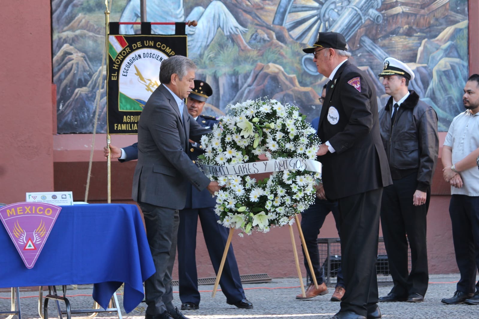 • Esta ceremonia fue convocada como cada año por Roberto Yañez Vázquez, presidente de Familiares y Amigos del Escuadrón 201 de la F.A.E.M e hijo del Sargento 1ro. Armero, Juan Bautista Yáñez Camarena