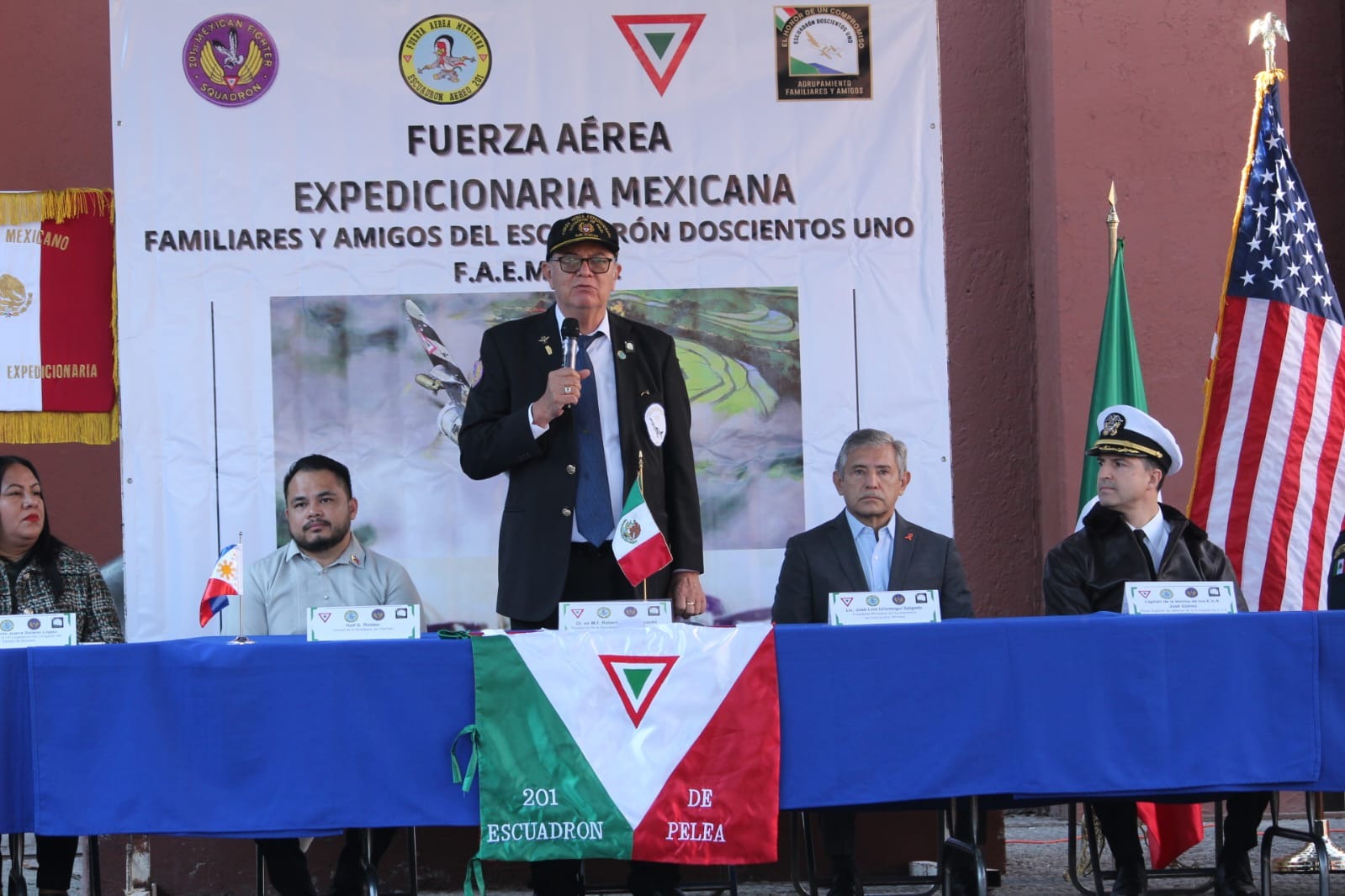 • También se contó con la participación de familiares de los ex combatientes del Escuadrón 201, representantes y agregados de la Embajada de Filipinas y de Estados Unidos de Norteamérica en México.