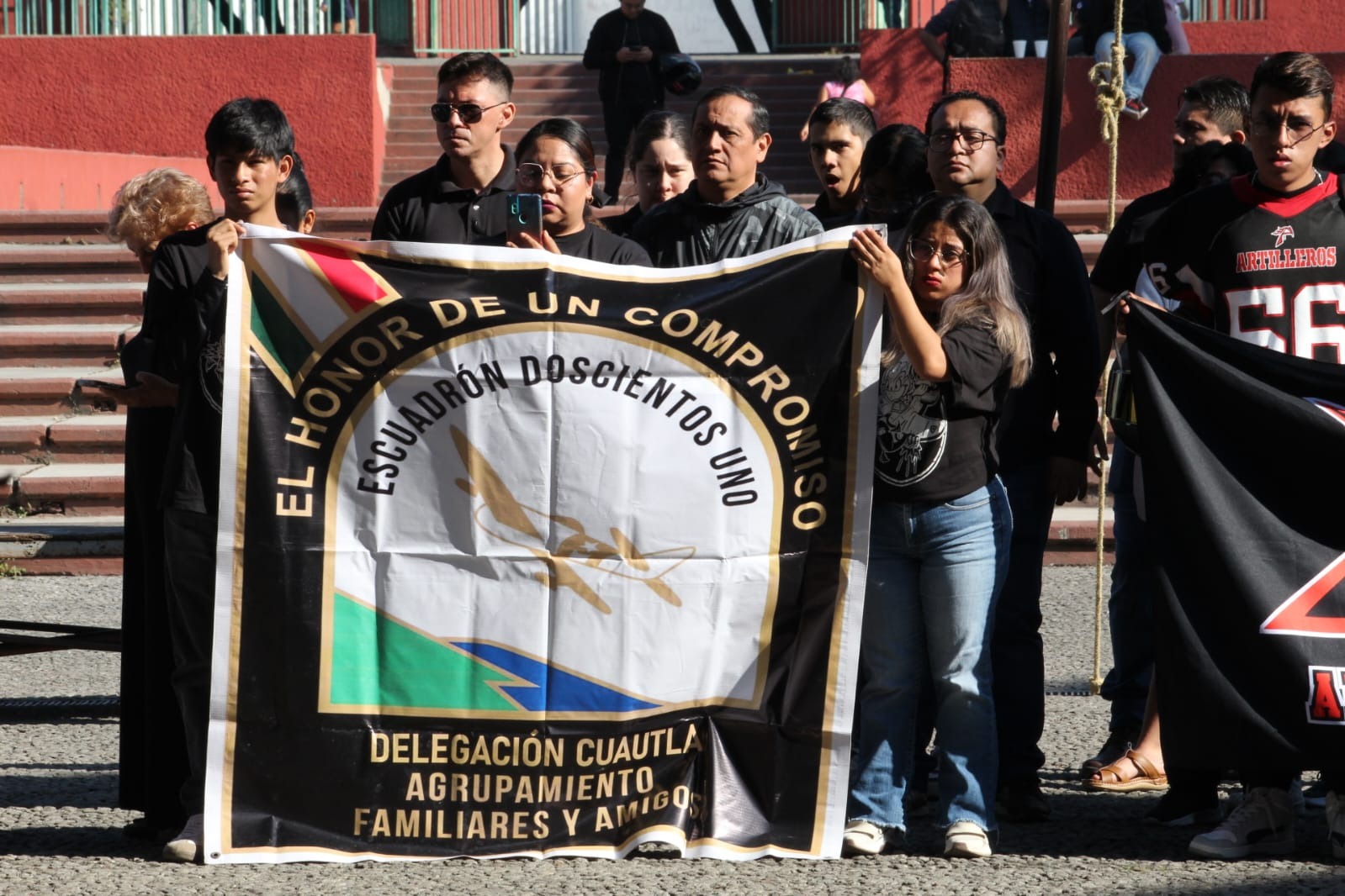 En presencia de la diputada presidenta de la Mesa Directiva del Congreso de Morelos, Jazmín Solano López; de la representación de la gobernadora Margarita González Saravia y de la 24/a. Zona Militar, José Luis Urióstegui recordó un poco de la historia del Escuadrón 201, cuya gesta heroica debe ser considerada un ejemplo para mantener una luz encendida que conduzca permanentemente a la paz que hoy de nueva cuenta está siendo trastocada.