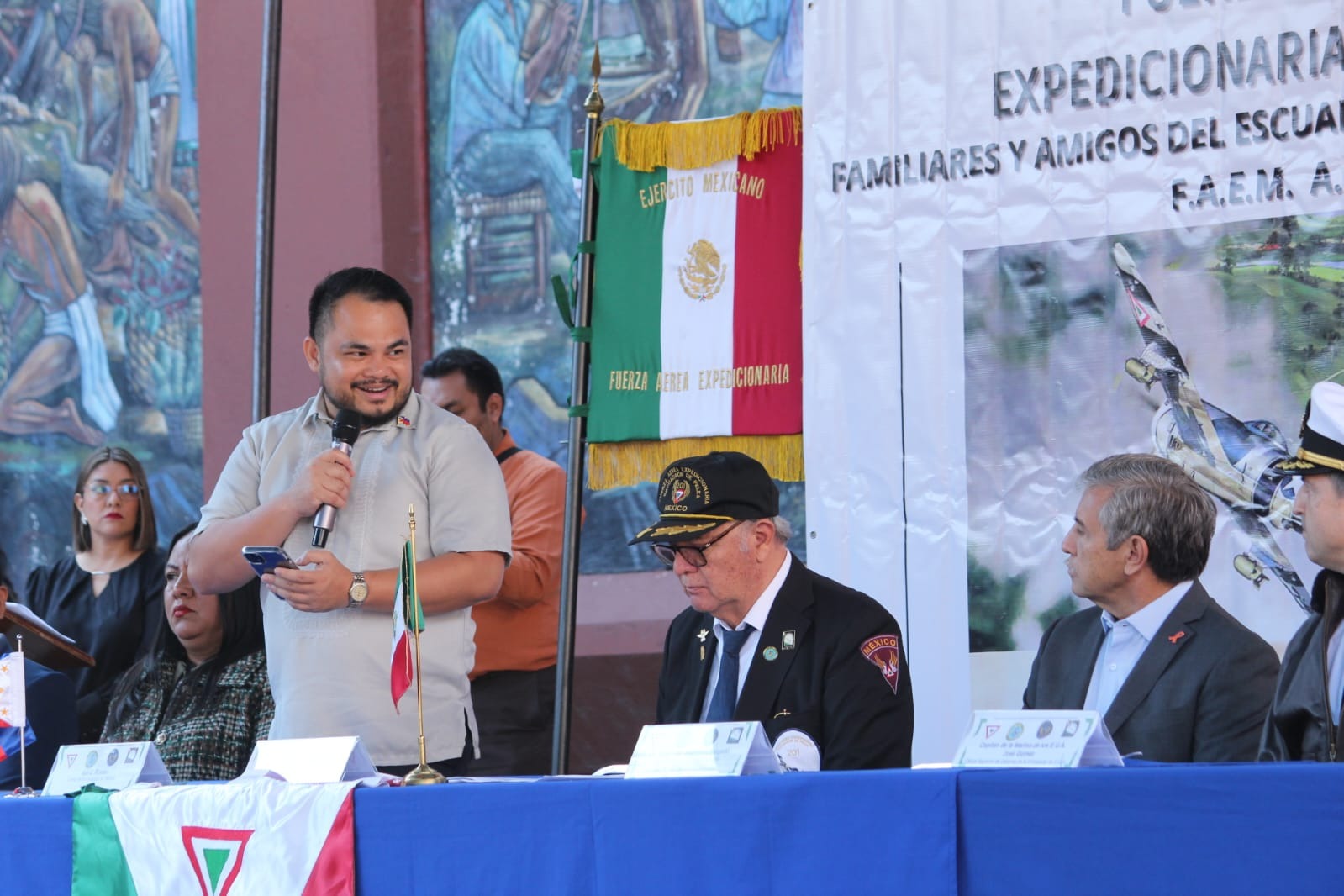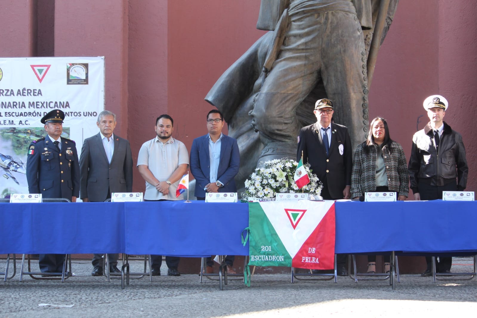 El presidente municipal de Cuernavaca, José Luis Urióstegui Salgado, participó este lunes en la guardia de honor por el 79 aniversario del retorno glorioso del Escuadrón 201 de la Fuerza Aérea Expedicionaria Mexicana (F.A.E.M) tras su incursión en la Segunda Guerra Mundial en 1945, donde conminó a la población a trasladar verbalmente la acción histórica de esta agrupación que en 1945 llevó a cabo acciones en defensa de la patria y la paz en el planeta.