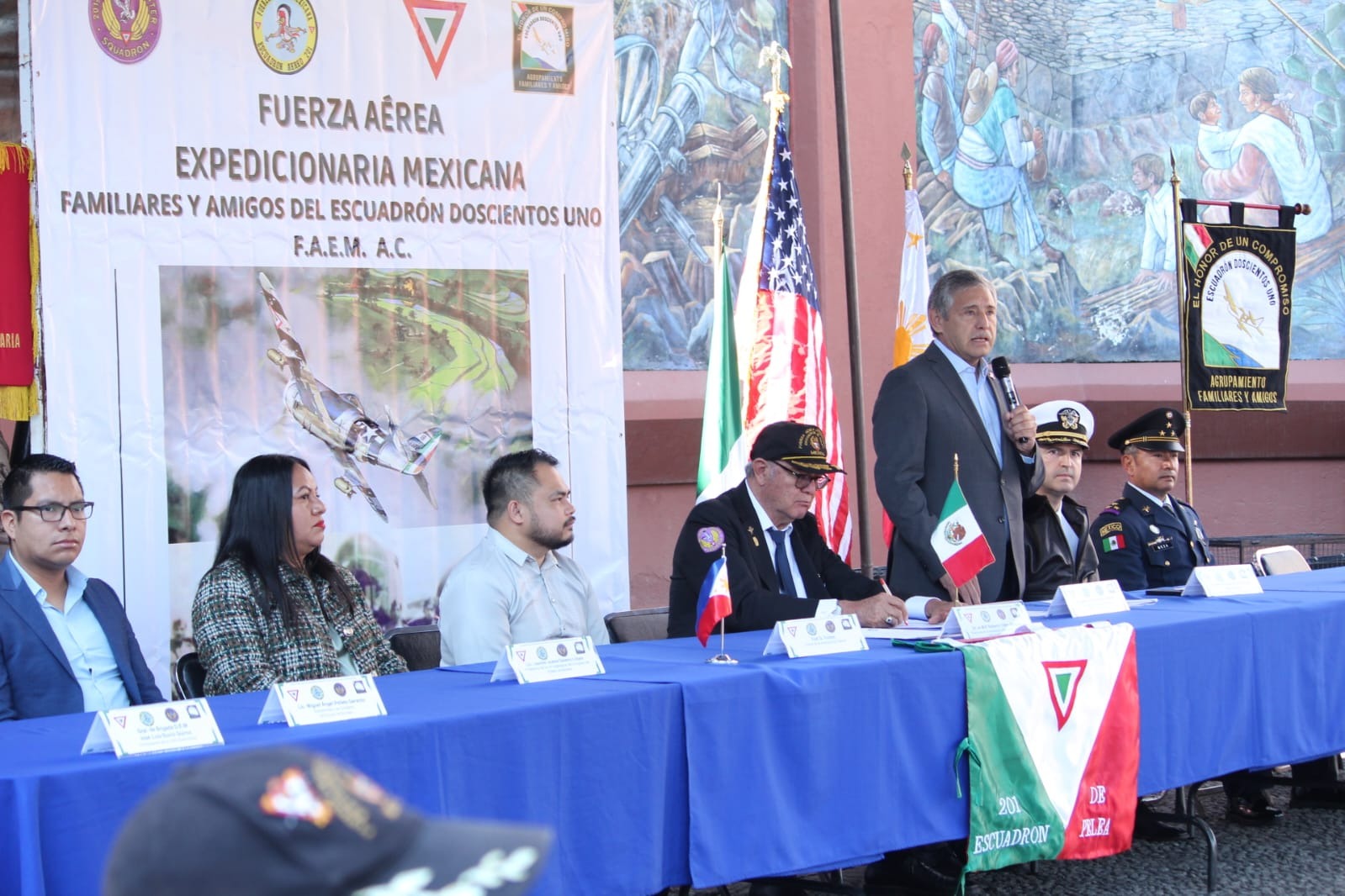 El evento que tuvo como sede el parque Alameda Solidaridad fue convocado por Roberto Yañez Vázquez, presidente de Familiares y Amigos del Escuadrón 201 de la F.A.E.M e hijo del Sargento 1ro. Armero, Juan Bautista Yáñez Camarena, integrante del escuadrón que combatió en la Segunda Guerra Mundial y que un 18 de noviembre de 1945 regresó al país victorioso.