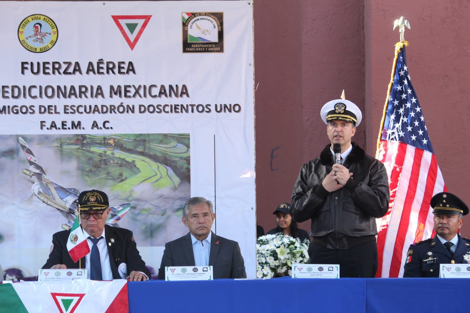También estuvieron presentes agregados de la Embajada de Estados Unidos de Norteamérica a través de la Fuerza Aérea, que hicieron un amplio reconocimiento al Escuadrón Mexicano por su aguerrido apoyo desde su arribo a Manila, Filipinas, donde respaldaron a las tropas en tierra, logrando acabar con objetivos japoneses con pilotos a bordo de los aviones bombarderos P-47 Thunderbolt.