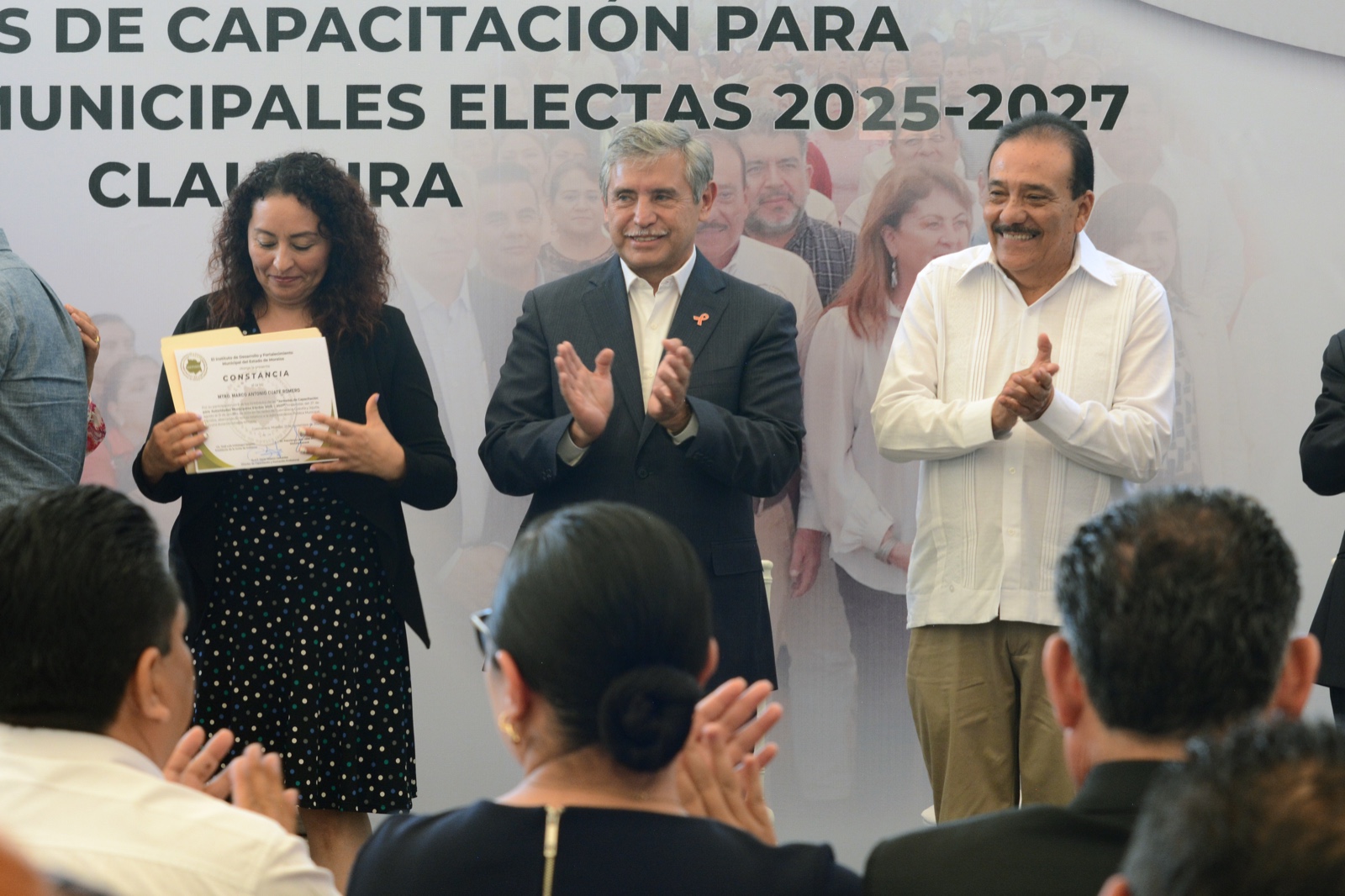• En su calidad de presidente de la Junta de Gobierno del IDEFOMM, el alcalde en funciones y electo de Cuernavaca participó en la entrega de reconocimientos en las Jornadas de Capacitación del IDEFOMM