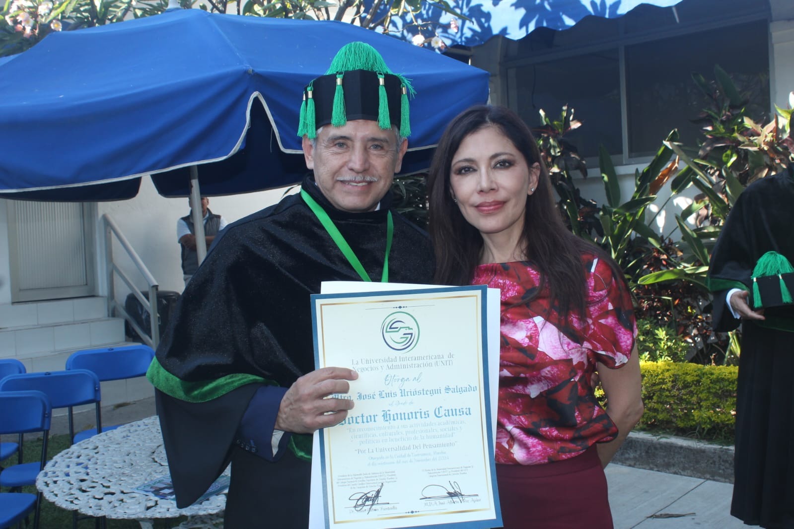 Acompañado de su esposa, Luz María Zagal Guzmán, presidenta del Sistema Municipal DIF Cuernavaca, así como de importantes profesionistas de talla nacional e internacional que también fueron reconocidos, José Luis Urióstegui agradeció la entrega de este título honorífico que representa una gran responsabilidad con la Universidad Interamericana para seguir sirviendo, pero también que reafirma el compromiso que los ha caracterizado en beneficio de la sociedad y que en esta ocasión fue destacado.