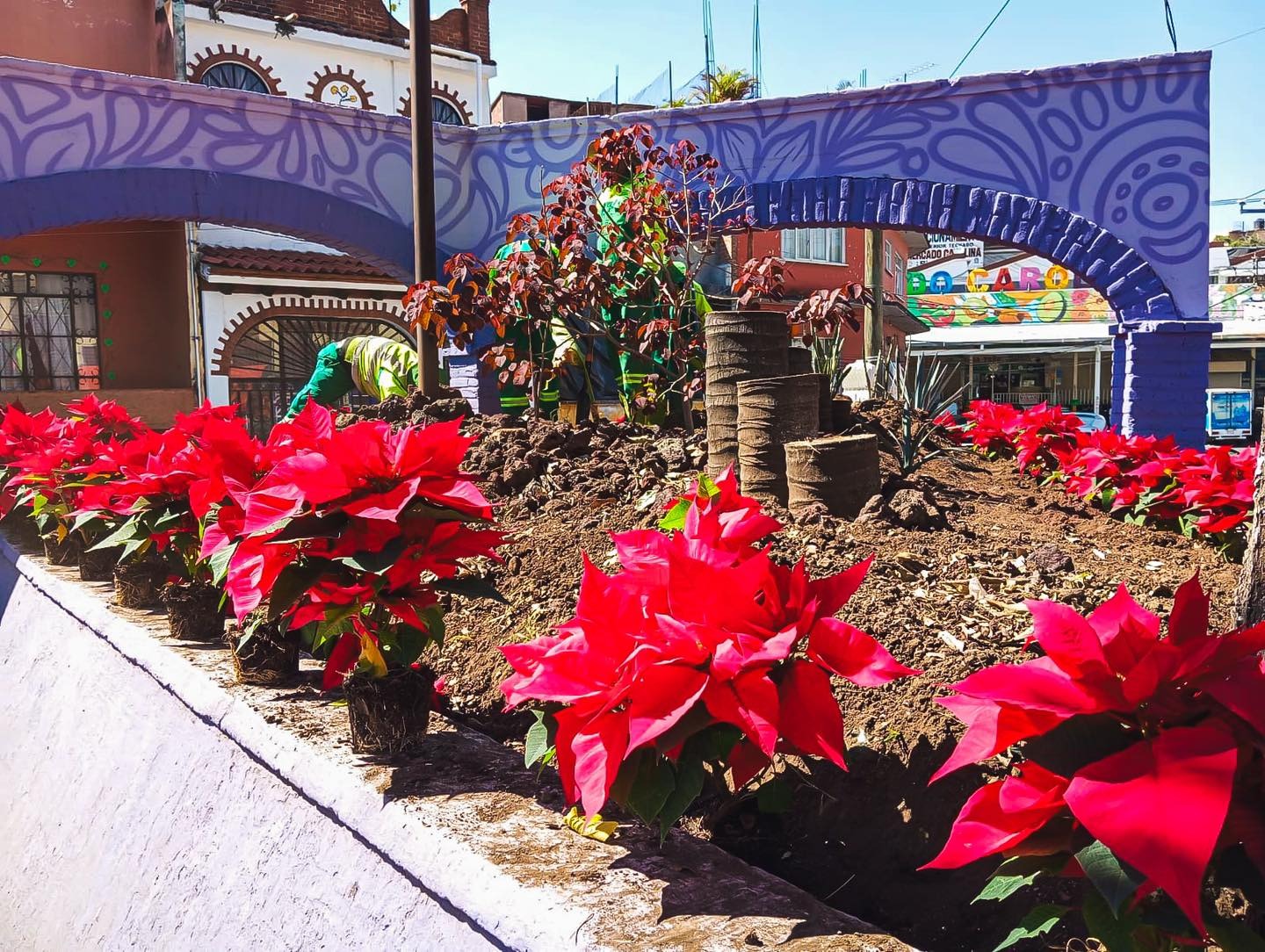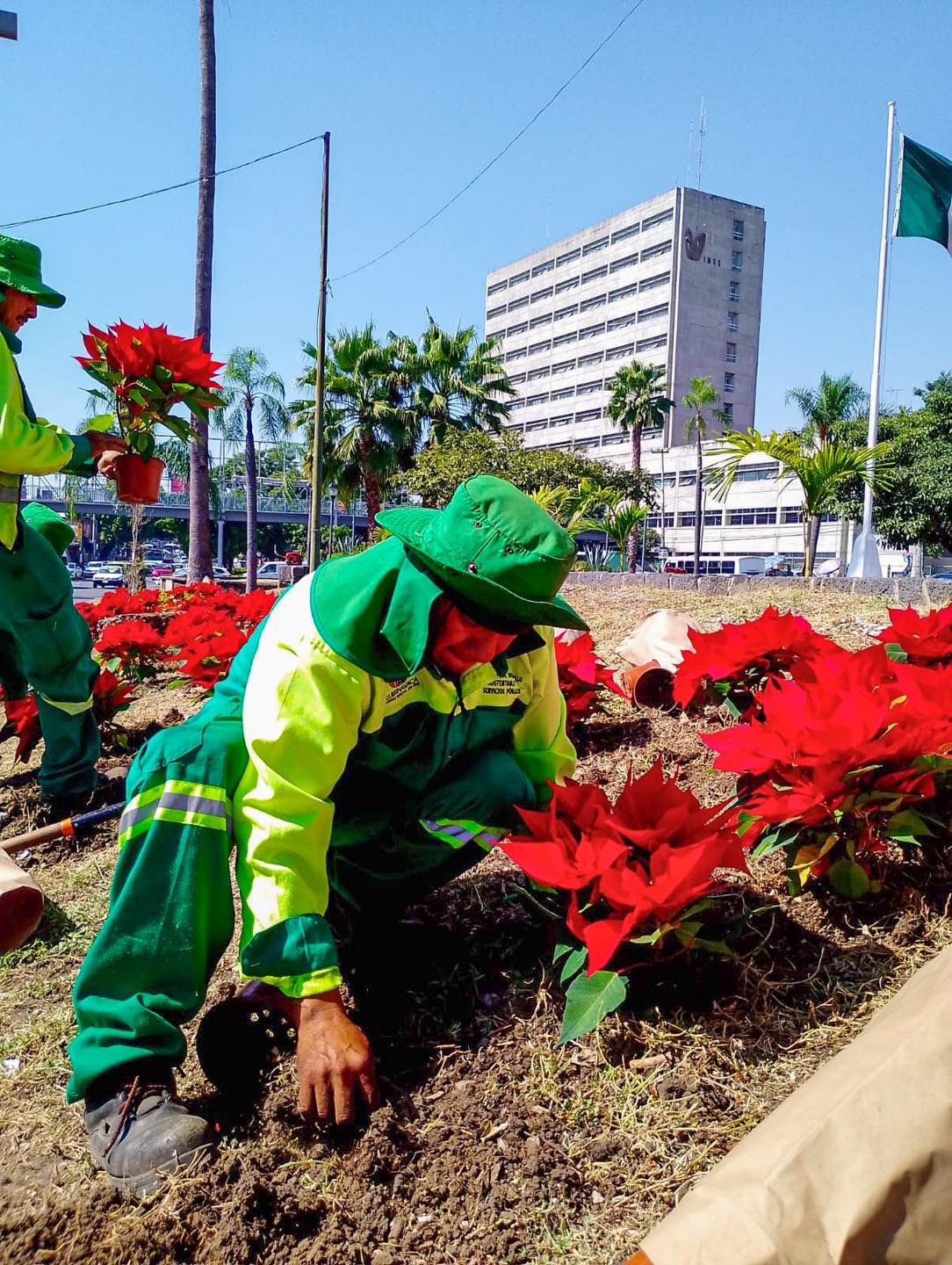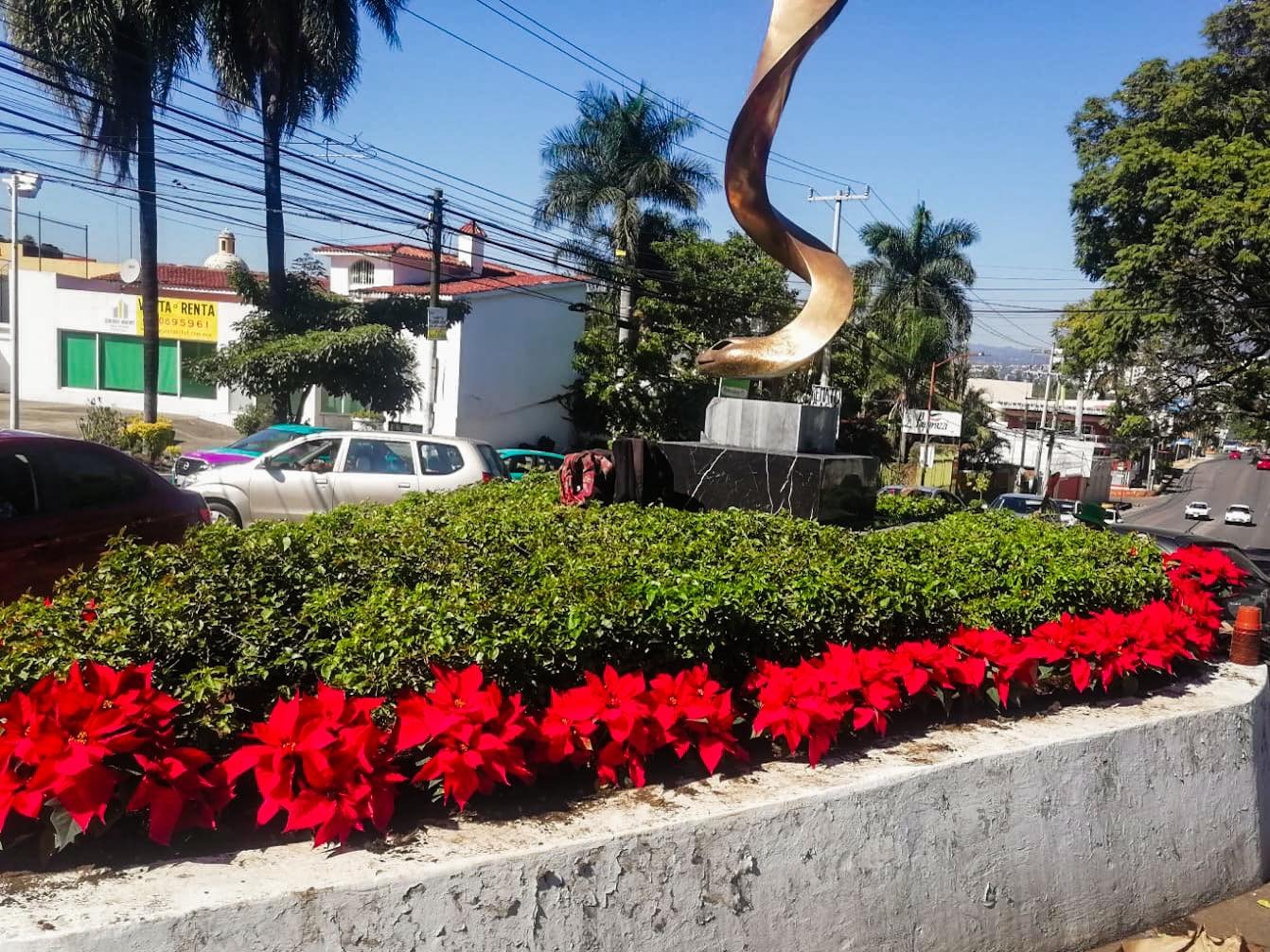 Como parte del Programa de Mantenimiento de Áreas Verdes y Camellones, el Ayuntamiento de Cuernavaca, a través del área de Parques y Jardines de la Secretaría de Desarrollo Sustentable y Servicios Públicos, realiza acciones integrales de embellecimiento y colocación de flores de nochebuena en distintos espacios públicos de la ciudad.