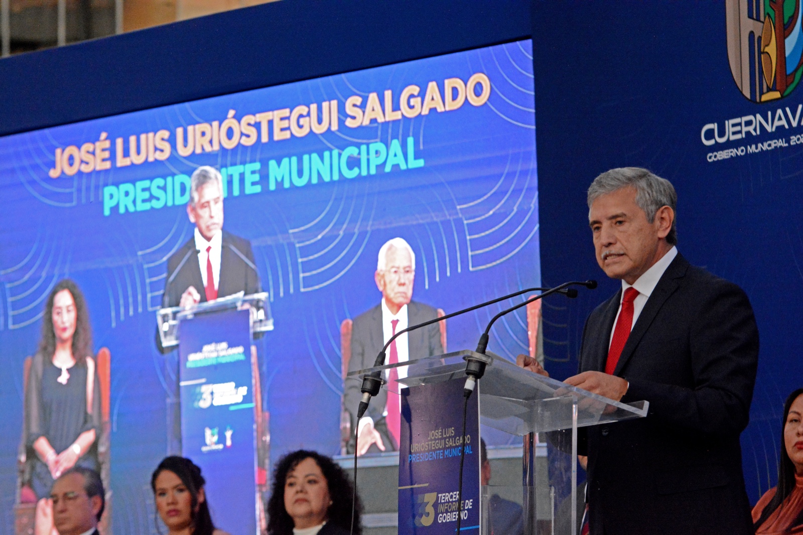En el marco de su tercer y último informe de resultados de su primera etapa al frente de la administración municipal de Cuernavaca, José Luis Urióstegui Salgado, agradeció el apoyo y esfuerzo de las y los trabajadores municipales que con su esfuerzo cotidiano se lograron cambios sustanciales en el territorio, entendiendo el espíritu de su gobierno que es servir a la población de manera honesta, profesional y con el compromiso de alcanzar el renacer de la ciudad.