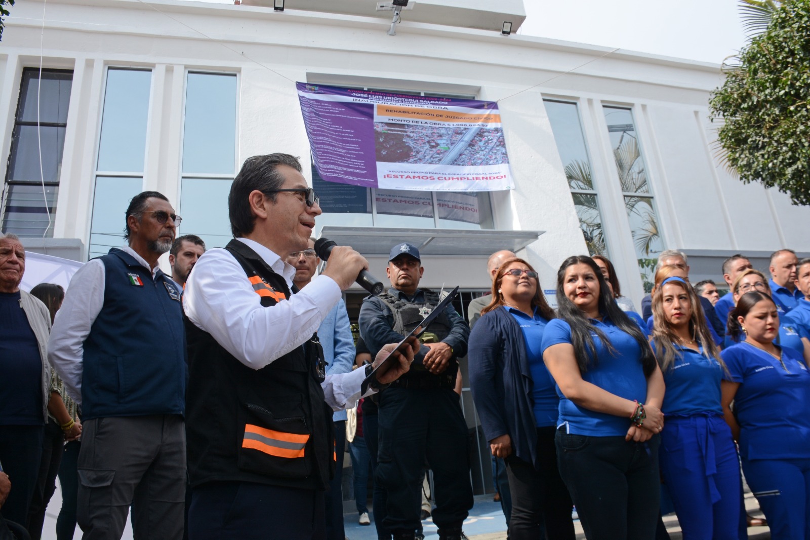 Tras el corte del listón, las autoridades recorrieron las instalaciones del Juzgado Cívico, contando con la presencia del secretario técnico de la Mesa Regional para la Construcción de Paz, Javier Sotres Ruano y de la representante del Secretariado Ejecutivo del Sistema Estatal de Seguridad Pública, Ana Belén Pineda; del director de Vinculación Municipal de la Secretaría de Gobierno del Estado, Ricardo Salinas Hernández, entre otros invitados.
