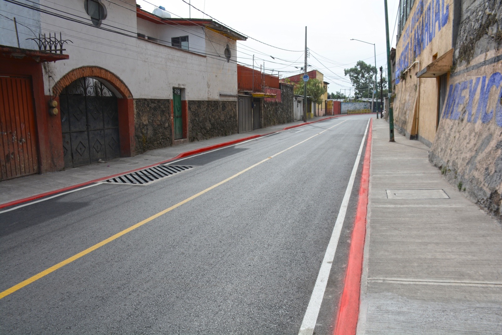 También incluyó la rehabilitación de una rejilla pluvial, para la cual se instaló un tubo corrugado PEAD de ocho pulgadas de diámetro en 134.20 metros dando paso al tendido de la carpeta de cinco centímetros de espesor de concreto asfáltico en caliente en tres mil 861.90 metros cuadrados, la construcción de banquetas de 10 centímetros de espesor de concreto con una resistencia de 150 kg/cm2 en 401.74 metros cuadrados, así como el balizamiento correspondiente que definió el cruce de las vialidades para garantizar la seguridad de los peatones y automovilistas.
