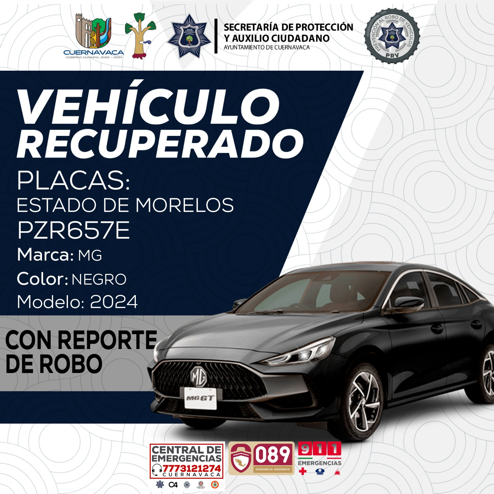 En tanto, el 13 de diciembre en la colonia Delicias se recuperó un vehículo marca MG, submarca One, color negro, año 2024, serie LSJW74U61RZ039229 con placas de circulación PZR657E del estado de Morelos, con reporte de robo vigente y el 14 de diciembre en el poblado de Acapantzingo elementos de SEPRAC recuperaron dos vehículos con reporte de robo vigente.