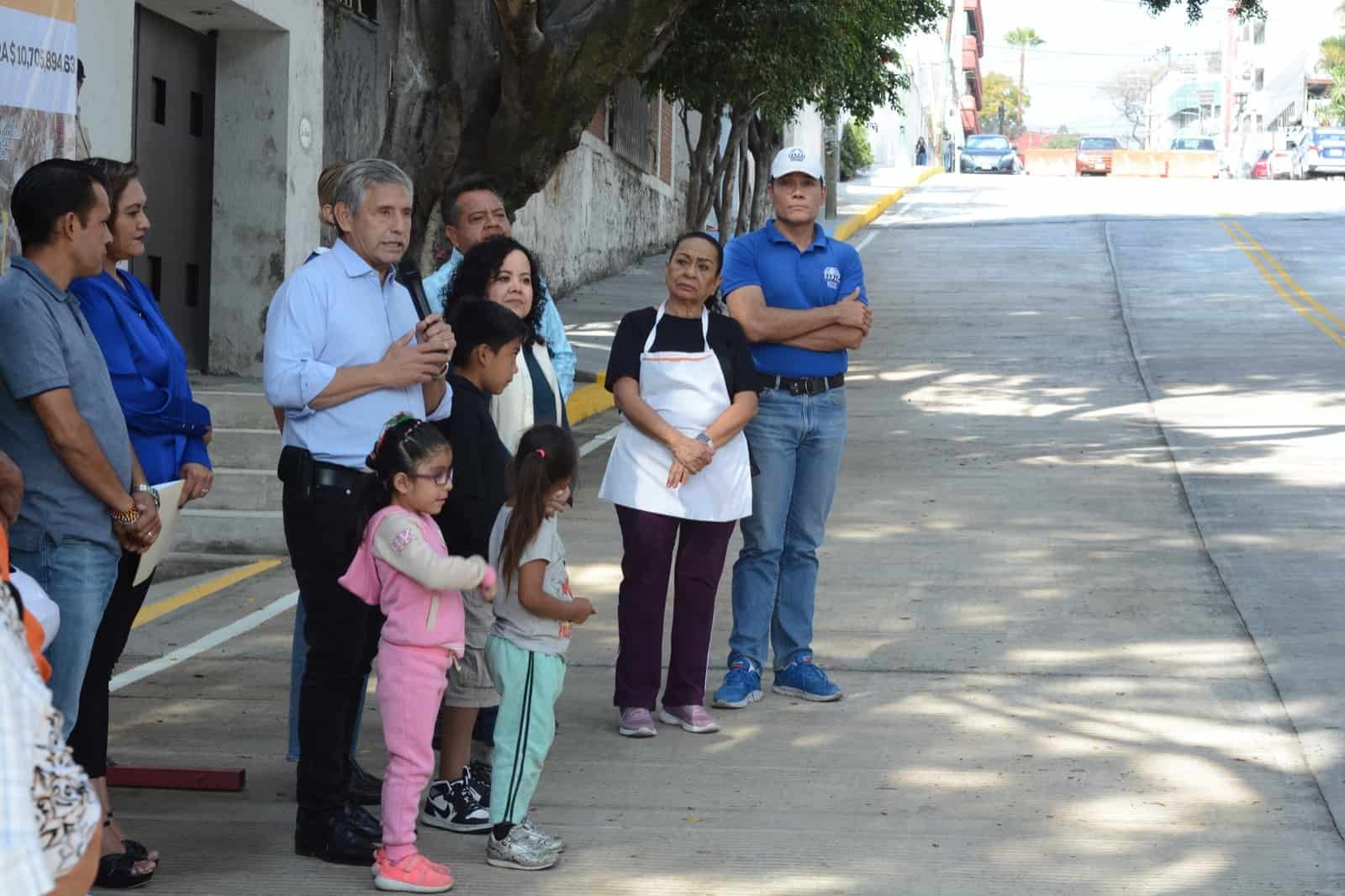 Con respecto a la repavimentación, detalló que los trabajos consistieron en el tendido del pavimento de concreto hidráulico premezclado con una resistencia de 250 kg/cm2 en mil 855.33 metros cuadrados y de la carpeta de siete centímetros de espesor de concreto asfáltico en caliente en tres mil 926.40 metros cuadrados; además se construyeron banquetas de 10 centímetros de espesor de concreto con una resistencia de 150 kg/cm2 en 641.10 metros cuadrados y guarniciones de 20 x 15 x 40 centímetros de concreto con una resistencia de 200 kg/cm2 con su correspondiente balizamiento.