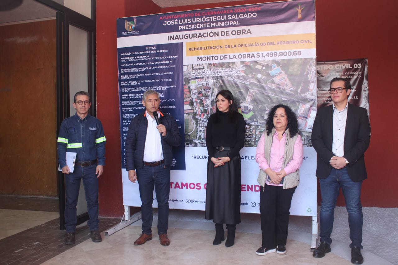 Con la finalidad de seguir mejorando la infraestructura de las oficinas del Ayuntamiento, el presidente municipal de Cuernavaca, José Luis Urióstegui Salgado, encabezó este martes la inauguración de la rehabilitación de las instalaciones del Registro Civil No. 1 y 3, para este último ubicado al interior del parque Alameda Solidaridad se destinó un monto de inversión de un millón 499 mil 900.68 pesos de recursos propios municipales que garantizará una mejor atención y servicio a la ciudadanía.