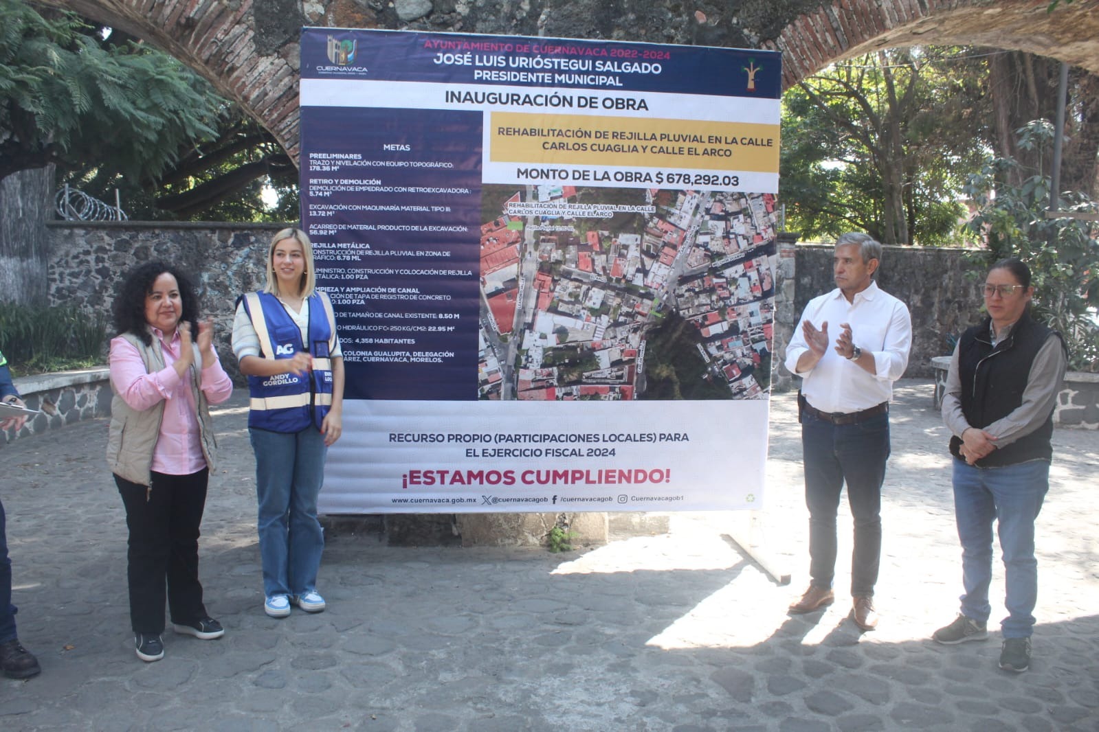 El presidente municipal de Cuernavaca, José Luis Urióstegui Salgado, concluyó este martes la administración 2022- 2024 con la inauguración de la obra de rehabilitación de la rejilla pluvial en las calles Carlos Cuaglia y del Arco en el barrio de Guaupita, para la cual se destinó un monto de inversión de 678 mil 292.03 pesos del fondo de recursos propios municipales que favorecerá a más de 14 mil habitantes, mejorando la imagen en esta histórica zona donde se ubica el acueducto de Gualupita que este año fue restaurado.