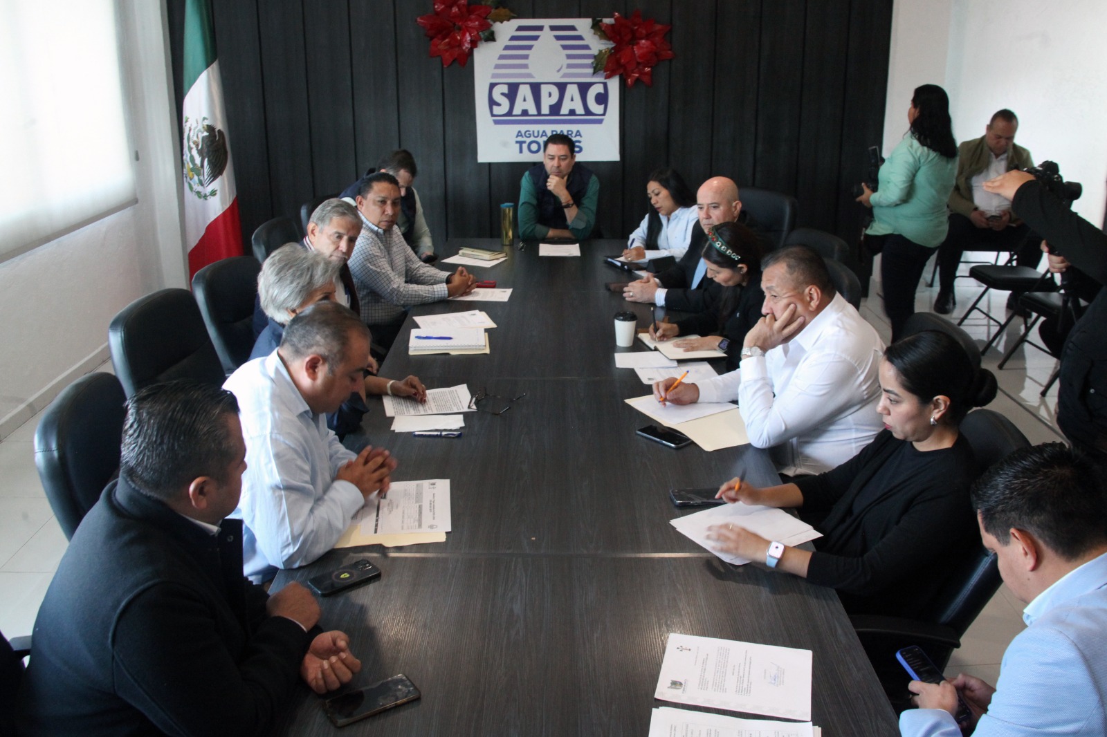 Además, se realizó la toma de protesta a los integrantes de la renovada Junta de Gobierno del SAPAC, conformada por: Paula Trade Hidalgo, síndica municipal; Salvador Aguilar Rea, regidor presidente de Servicios Públicos Municipales; Juan Miguel Serrano Gastelum, regidor presidente de Protección Ambiental y Desarrollo Sustentable; Miriam Aidee Barajas Basilio, regidora presidenta de Bienestar Social; Alfredo González Sánchez, regidor presidente de Hacienda, Programación y Presupuesto; Sergio Hugo Barón Pulido, regidor presidente de la Coordinación de Organismo Descentralizados y Paz Hernández Pardo, regidora presidenta de Relaciones Públicas y Comunicación Social.