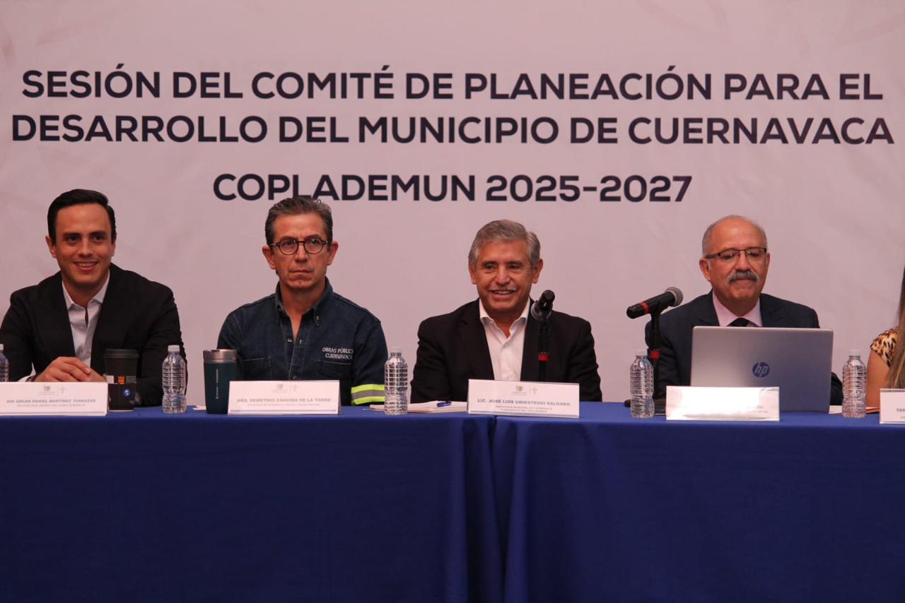 En su compromiso de seguir avanzando con proyectos de infraestructura urbana que representan inversiones históricas para la capital morelense, José Luis Urióstegui Salgado, presidente municipal de Cuernavaca, encabezó este miércoles la sesión de instalación del Consejo Permanente del Comité de Planeación para el Desarrollo Municipal (COPLADEMUN) 2025- 2027, donde destacó que como ocurrió en su administración pasada estarán transformando no solo las vialidades, sino también, logrando avances significativos en áreas claves, como el servicio de agua potable, siempre con el objetivo de mejorar la calidad de vida de la población.