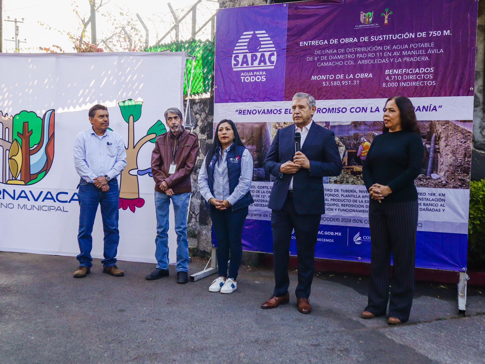 A estas entregas de obra asistieron Arnoldo Heredia Romero, director del Sistema de Agua Potable y Alcantarillado de Cuernavaca (SAPAC), directivos de este organismo; los encargados de los programas Juan Carlos Salinas de Proagua y Jorge Benek Keil de PRODDER de Conagua.