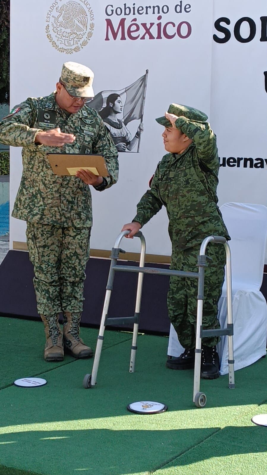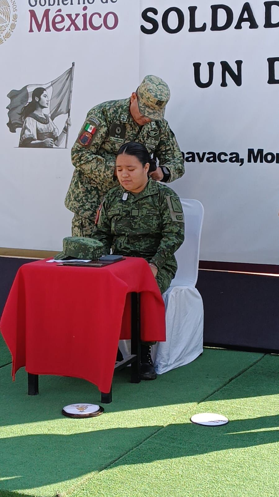 Como “un sueño hecho realidad” calificó Zoé Giselle su designación como “Soldado por un día” por parte del General de Brigada de Estado Mayor Armando Toscano Reyes, jefe de Estado Mayor de la 24ª Zona Militar, y del Coronel de Infantería Estado Mayor Rodolfo Altamirano Moctezuma, comandante del 21 Batallón de Infantería de la Sedena, atestiguando el nombramiento honorario la titular de la Secretaría de Desarrollo Humano y Participación Social del Ayuntamiento de Cuernavaca, Sandra Adelina Pinzón Sánchez.