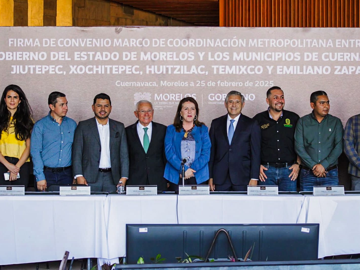 En un importante paso para la consolidación del desarrollo urbano y regional, el presidente municipal de Cuernavaca, José Luis Urióstegui Salgado, firmó el convenio marco de coordinación metropolitana entre el Gobierno del Estado de Morelos y los municipios de la zona metropolitana de Cuernavaca, entre los que se encuentran Jiutepec, Xochitepec, Huitzilac, Temixco y Emiliano Zapata.