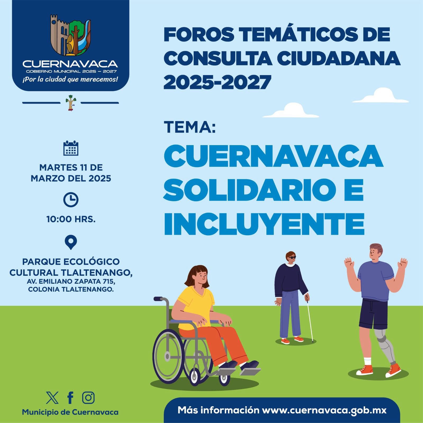 • Para la elaboración del Plan Municipal de Desarrollo 2025- 2027, la ciudadanía podrá participar en el Foro “Cuernavaca Solidario e Incluyente”, que incluirá dos fechas