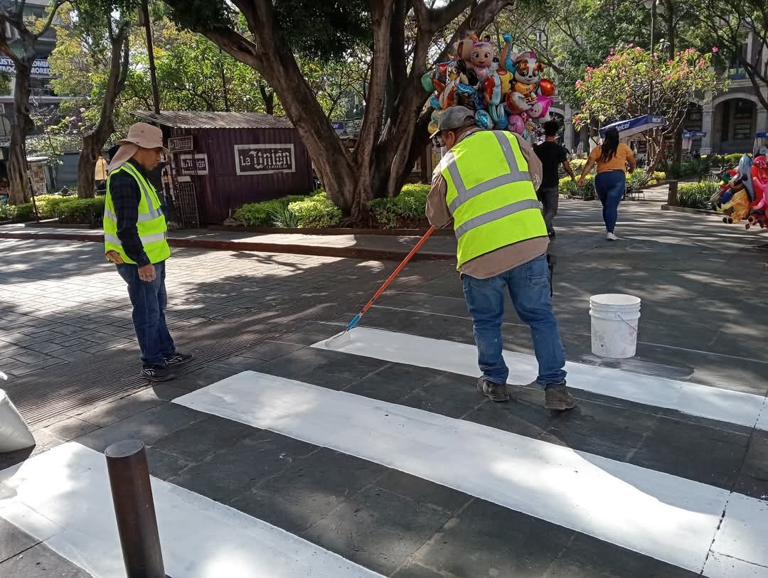 La Dirección de Infraestructura Urbana, con el apoyo de dos brigadas, efectuó tareas de rehabilitación y mantenimiento en varias calles del centro histórico de Cuernavaca, como balizamiento, pintura de pasos peatonales y guarniciones para mejorar la seguridad y la visibilidad en las vías públicas, el remozamiento y recintos para embellecer áreas de alto tráfico, el retiro de publicidad en postes que afectaban la imagen urbana, y el levantamiento de escombro en sitios como Jardín Juárez, inmediaciones del Palacio de Cortés‚ Gutenberg, Himno Nacional‚ Av. Morelos (a la altura de la Glorieta del Niño Artillero), Amate‚ Plutarco Elías Calles‚ Cuauhtemotzin‚ Leyva‚ General Boca Negra‚ Monte Albán‚ Calle 20 de Noviembre‚ Callejón Borda‚ Rayón y Abasolo‚ contribuyendo a un entorno más limpio y accesible.