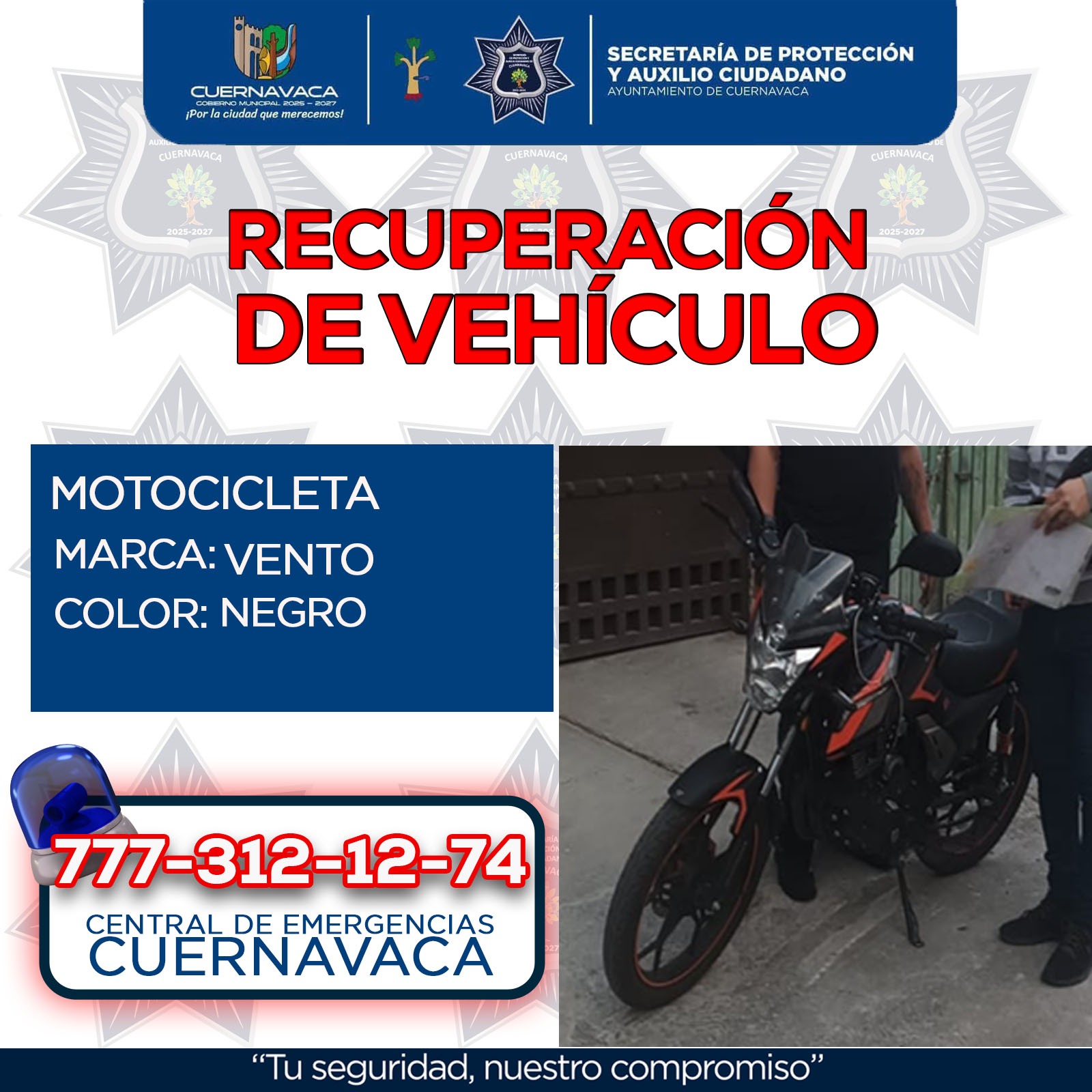 Se recuperaron 4 vehículos; 3 autos y 1 motocicleta con reporte de robo vigente, dando un total de 70 unidades automotoras recuperadas del 01 de enero al 11 de mayo.